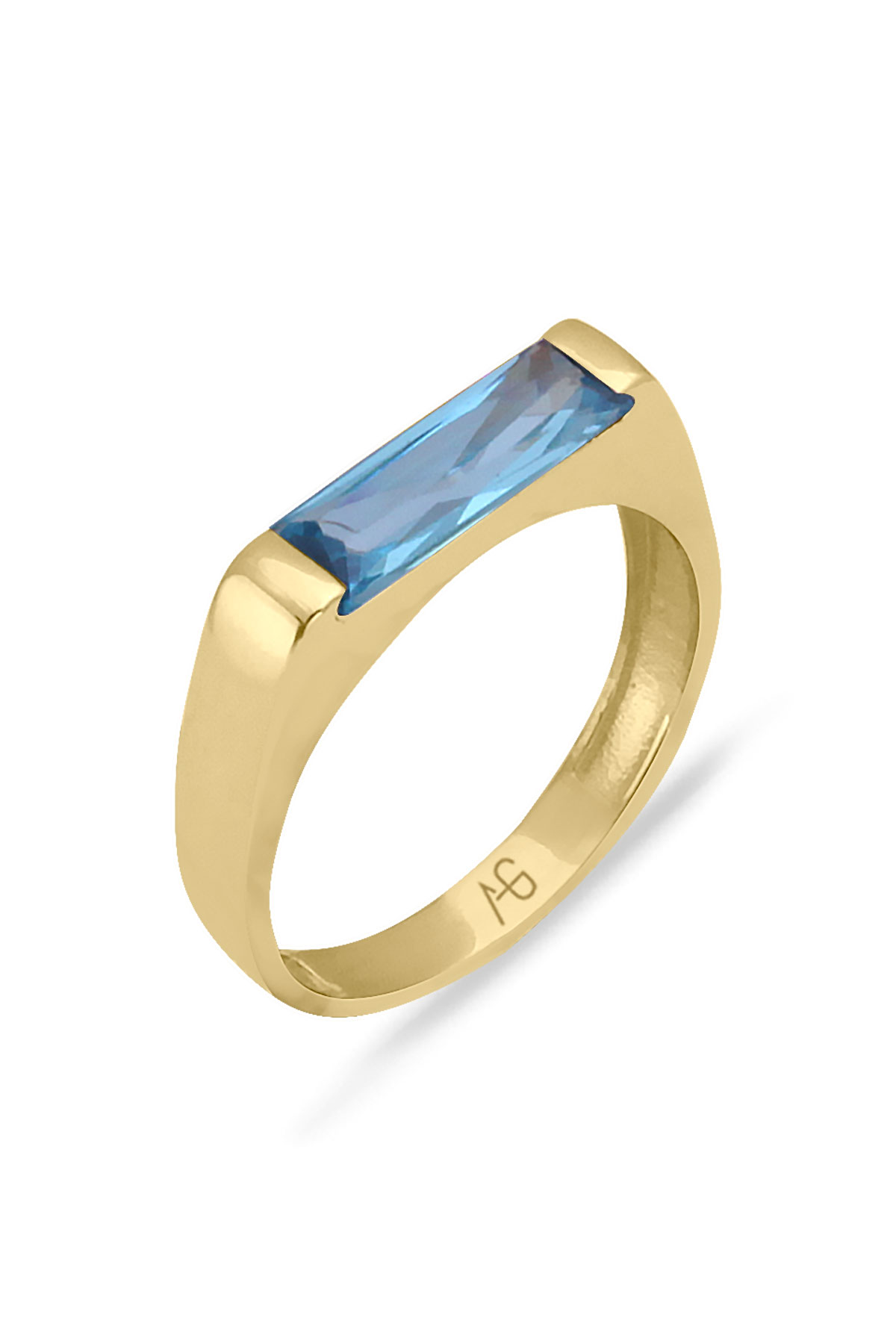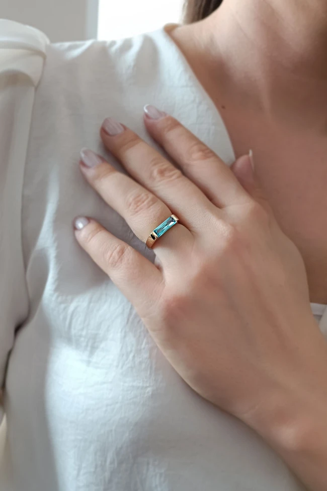 14 Ayar aqua marine taşlı ışıl ışıl spor ve şık duruşa sahip günlük kullanıma uygun 2.20 gram ağırlığında altın yeni sezon çubuk yüzük.