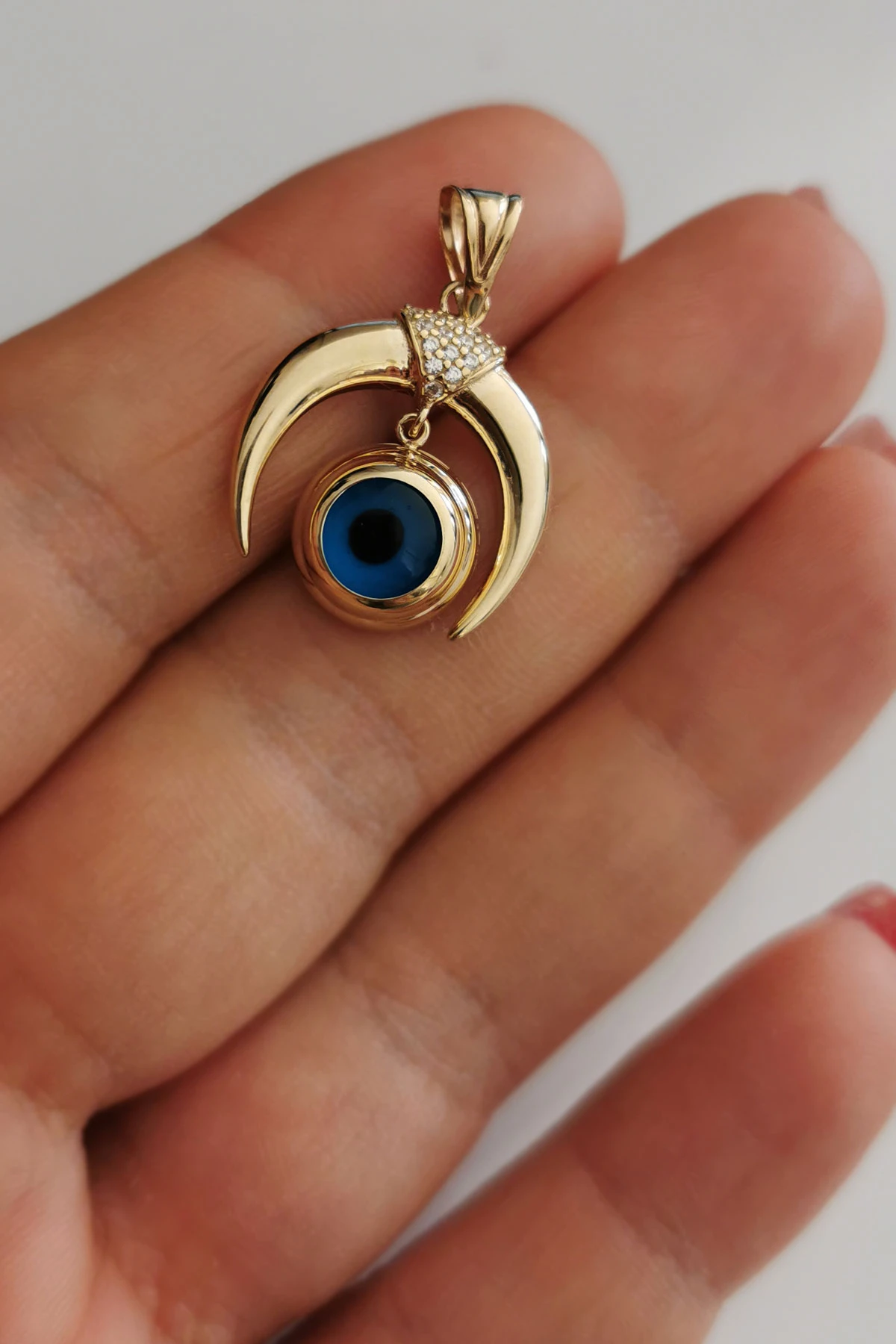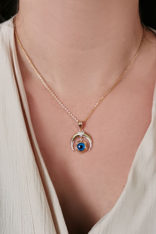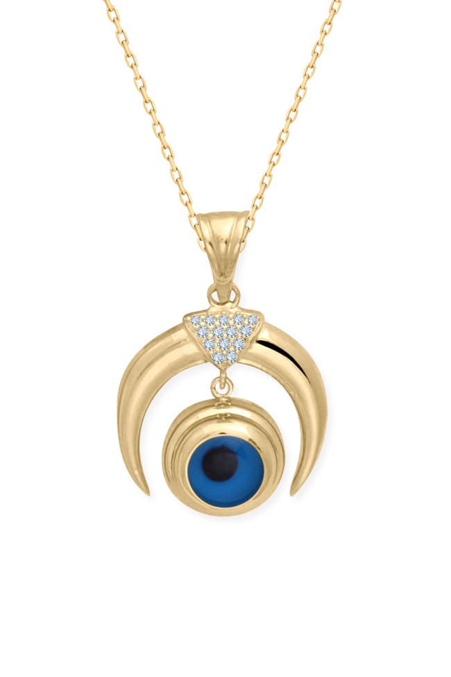 3.50 Gram Ağırlığında Ay Model Göz Tasarım Spor 14 Ayar Altın Kadın Kolye.