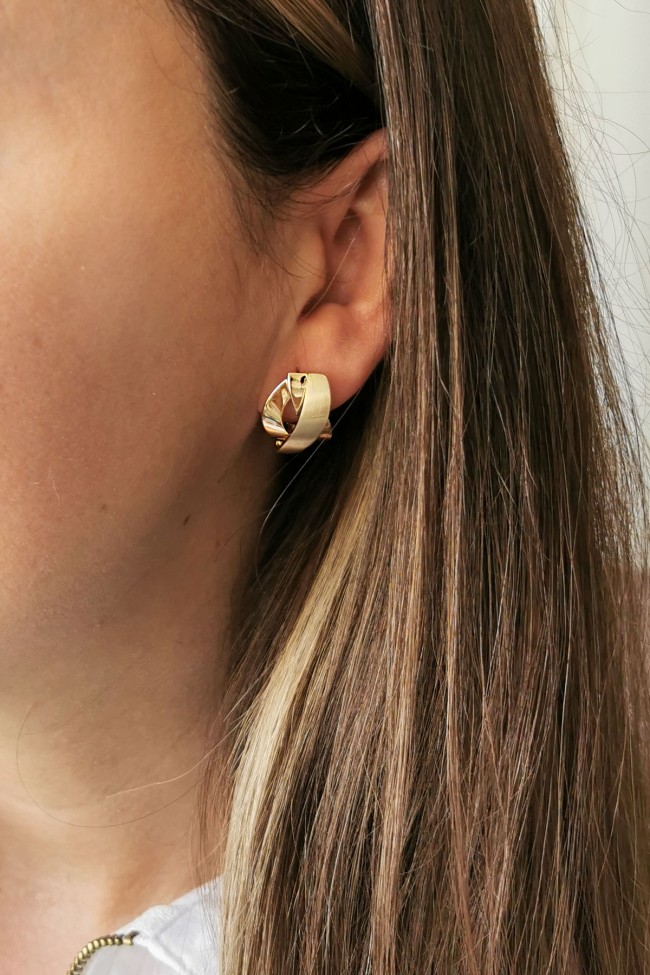 6.00 Gram Ağırlığında Taşsız Bant Geçiş Detaylı Tasarımına Eşlik Eden Mat Ve Parlak Geçişleri İle Oldukça Hoş Bir Havaya Sahip, Gösterişli Ve Günlük Kullanıma Uygun 14 Ayar Altın Kadın Küpe.