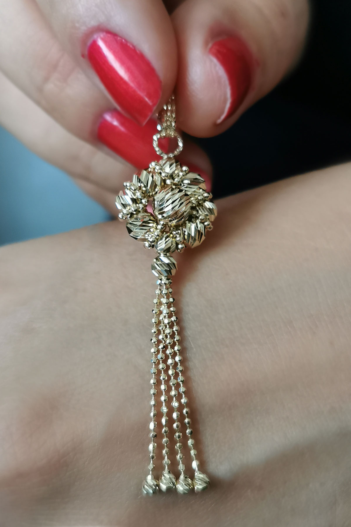 2.50 Gram Ağırlığında Püsküllü Çiçek Model Özel İtalyan Tasarım Olan Şık Detaylara Sahip 14 Ayar Altın Kadın Fantazi Kolye Ucu.
