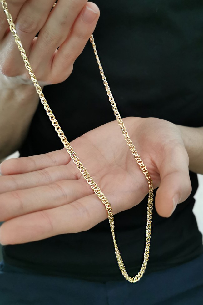 Şık Tasarım Tüm Yıl Severek Kullanacağınız 55 Cm Uzunluğunda 6.70 Gr. Ağırlığında 14 Ayar Altın Modern Günlük Kullanıma Uygun Çiftli Gurmet Model Unisex Zincir Kolye.