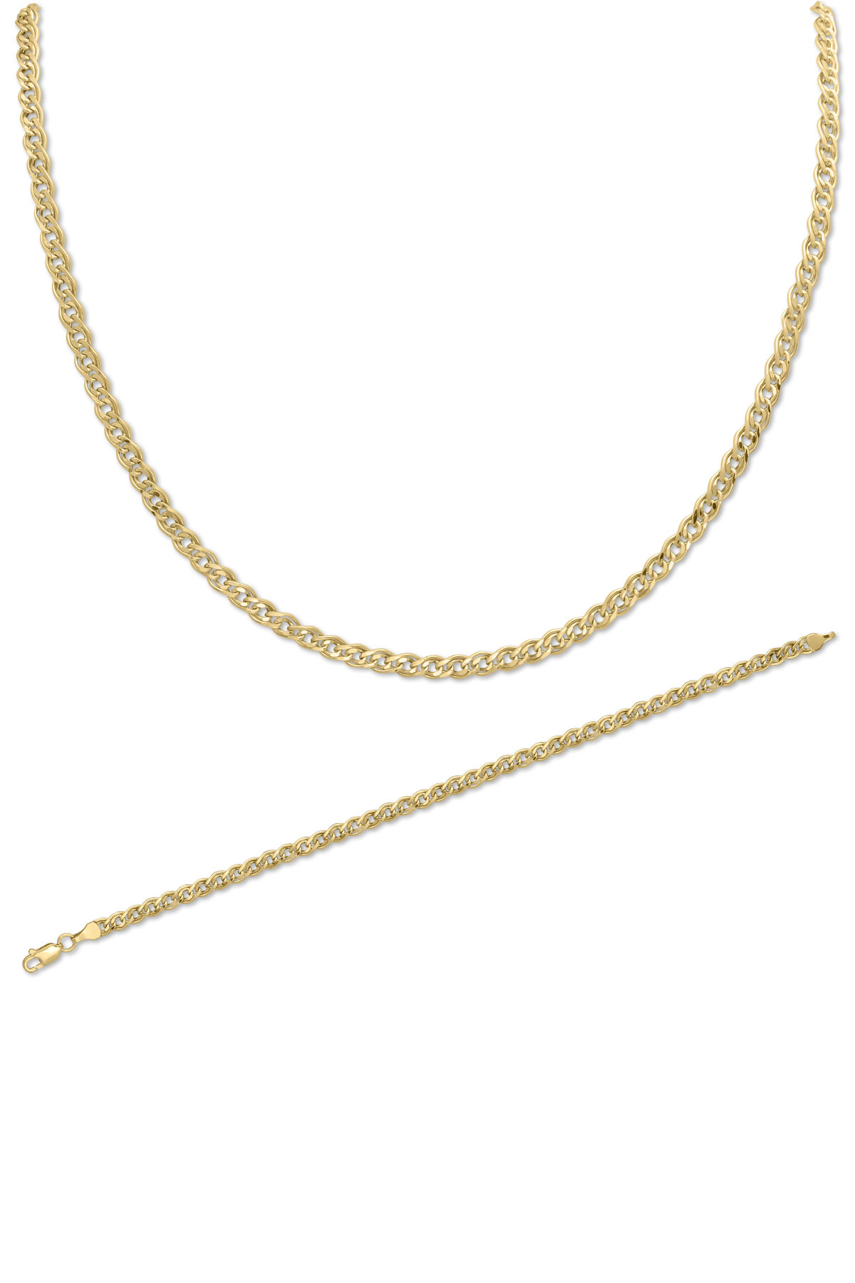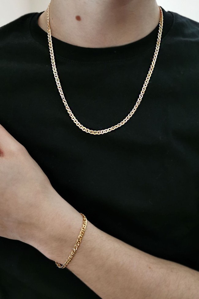 Şık Tasarım Tüm Yıl Severek Kullanacağınız 9.40 Gr. Ağırlığında 14 Ayar Altın Modern Günlük Kullanıma Uygun Çiftli Gurmet Model Unisex Zincir Kolye Bileklik Takım.