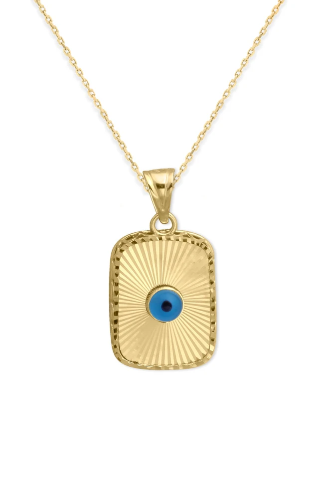 14 Ayar nazardan korunmanın en şık hali olarak tabir edebileceğimiz ışıl ışıl tasarıma sahip günlük kullanıma uygun farklı kolyelerinizle bir arada kombine olarak da kullanabileceğiniz dikdörtgen form 3.10 gram ağırlığında göz altın kolye.