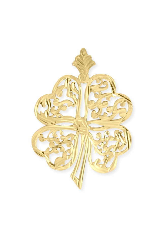 3.95 Gram Ağırlığında Özel Kalem İşleme Detaylı Gösterişli Model Etnik Desenleriyle Şık Tasarıma Sahip 14 Ayar Altın Yonca Kolye Ucu.