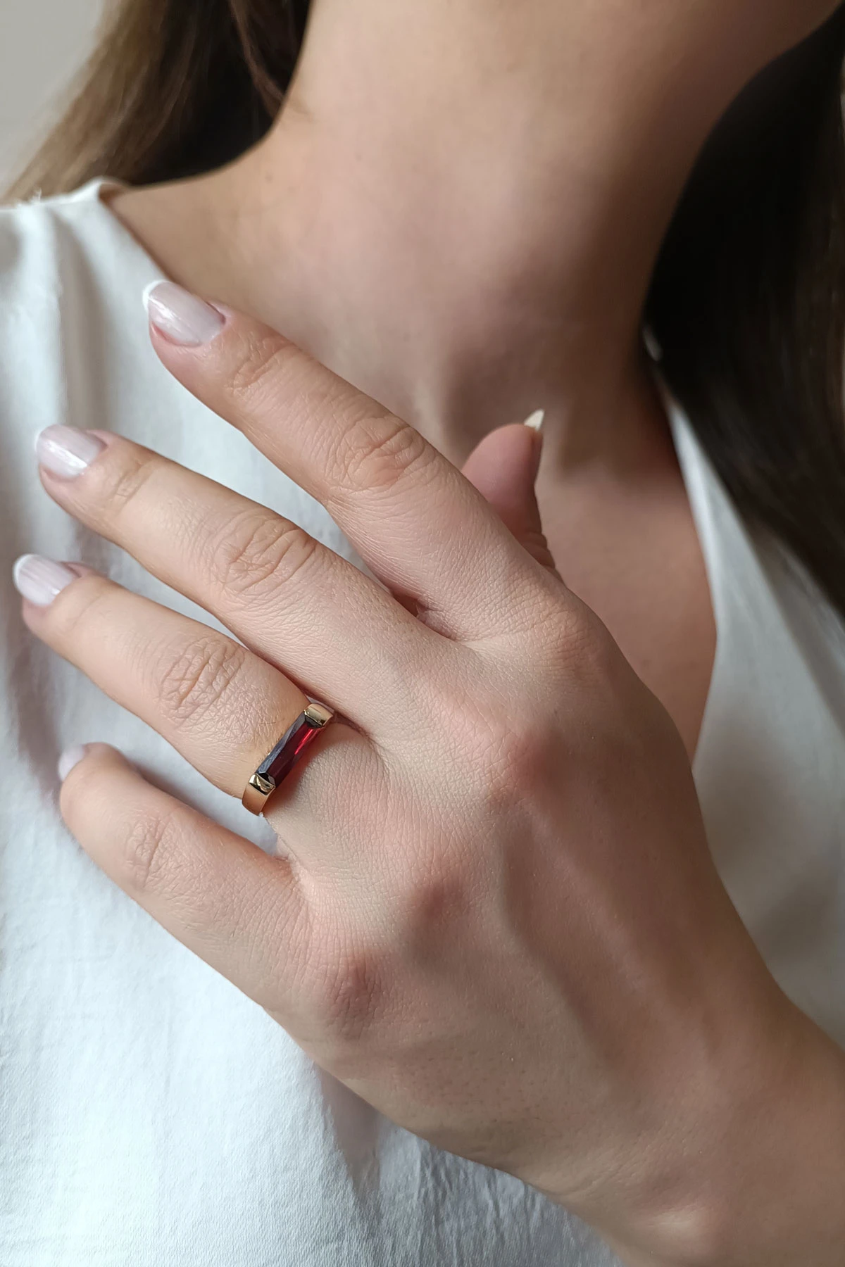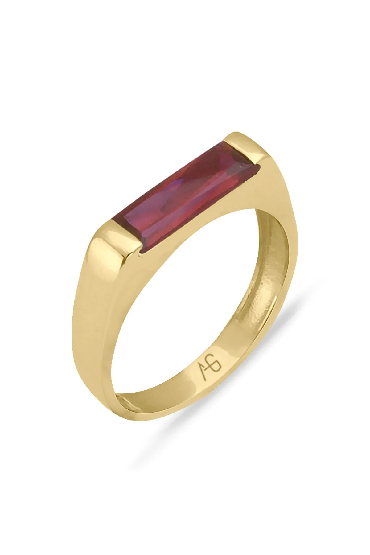 14 Ayar garnet taşlı ışıl ışıl spor ve şık duruşa sahip günlük kullanıma uygun 2.20 gram ağırlığında altın yeni sezon çubuk yüzük.