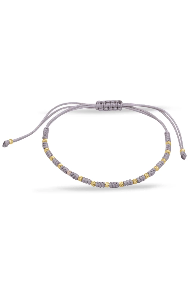 Dorika toplu tasarımı ile günlük olarak da kullanabileceğiniz, özel günlerinde sevdiklerinize şık bir hediye seçeneği olacak 0.60 gr ağırlığında 14 ayar altın taşsız gri özel örgü ip detaylı unisex kullanıma uygun spor ipli bileklik.