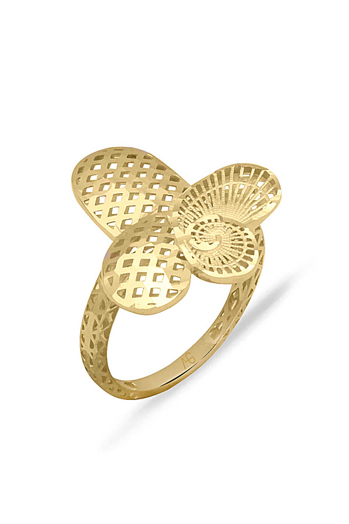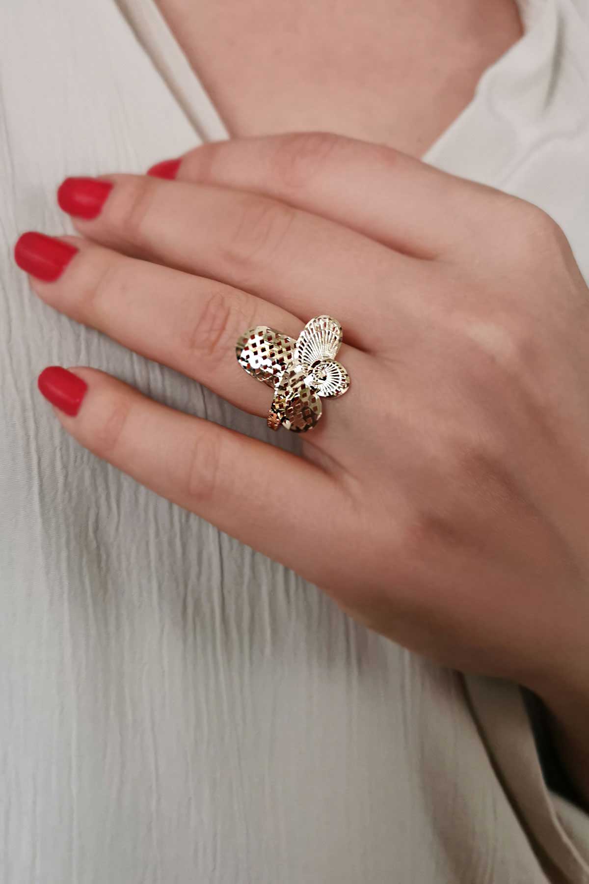 2.25 Gram Ağırlığında Kelebek Model Özel Füzyon Tasarım Olan Şık Detaylara Sahip 14 Ayar Altın Kadın Yüzük
