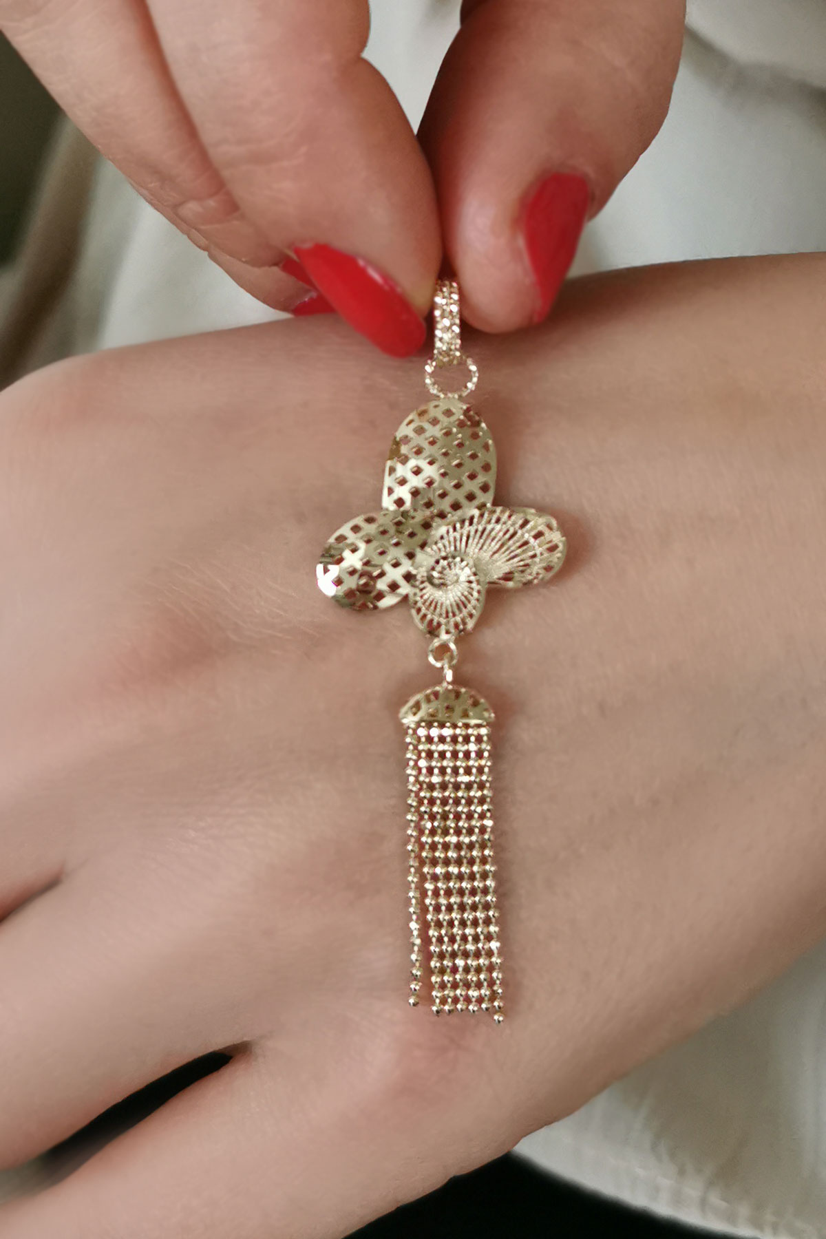2.85 Gram Ağırlığında Püsküllü Kelebek Model Özel İtalyan Tasarım Olan Şık Detaylara Sahip 14 Ayar Altın Kadın Fantazi Kolye Ucu.