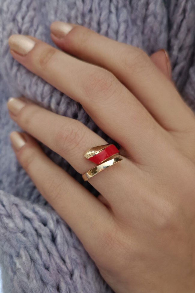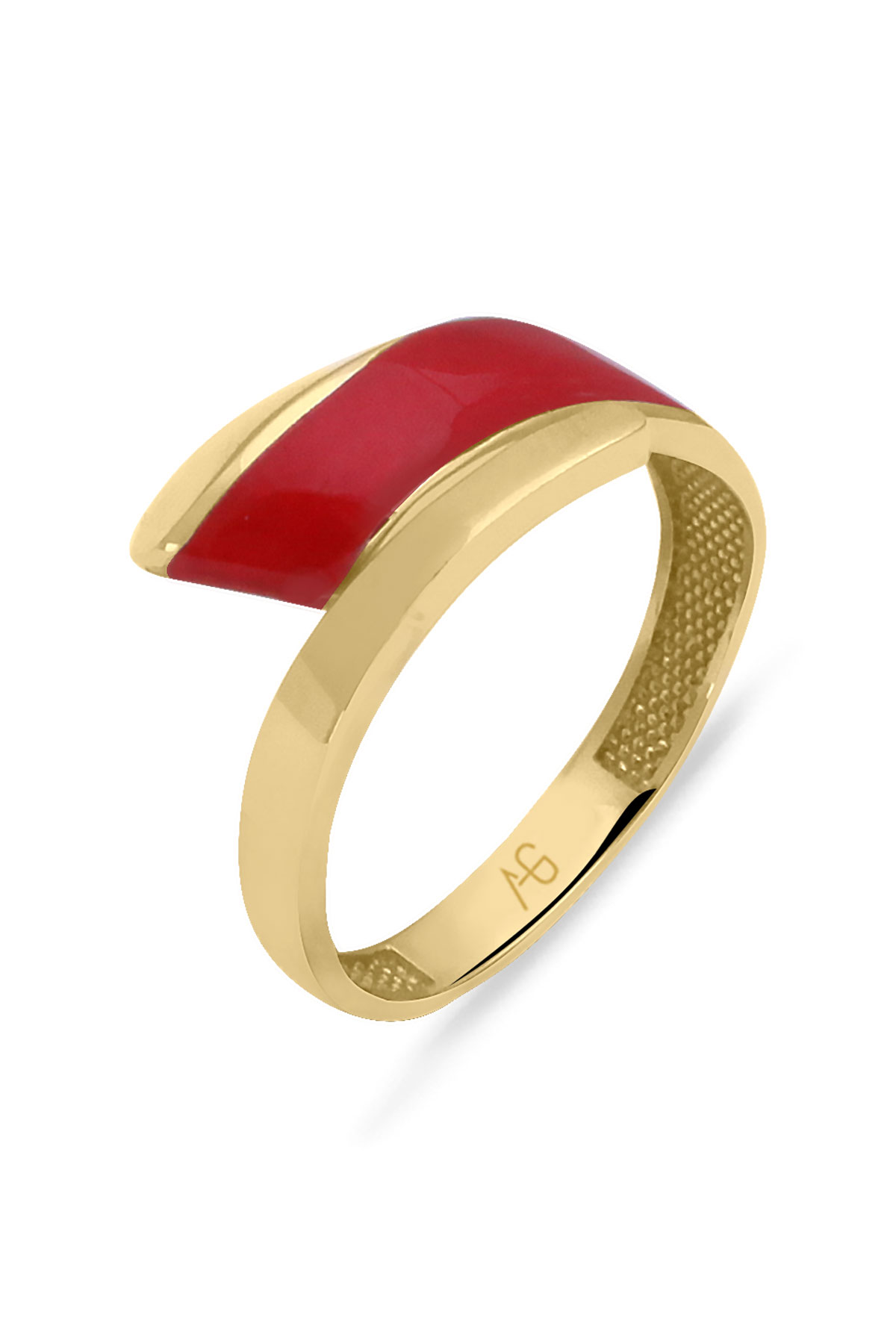 14 Ayar şık ve farklı duruşa sahip kırmızı mineli modeli ile günlük kullanıma oldukça uygun, sevdiklerinize yada kendinize armağan olarak tercih edebileceğiniz modern tasarım 2.15 gram ağırlığında farklı model yüzüklerinizle bir arada da kullanabileceğiniz altın taşsız yüzük.