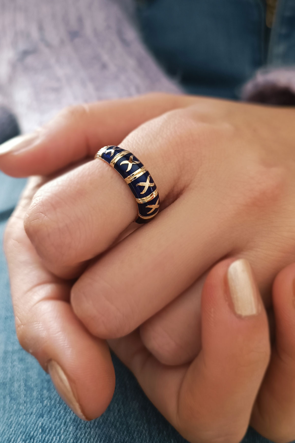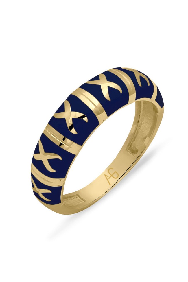 14 Ayar modern tasarımı ile farklı duruşa sahip lacivert mineli taşsız model, sevdiklerinize yada kendinize armağan olarak tercih edebileceğiniz modern tasarım günlük kullanıma uygun 3.30 gram ağırlığında spor yüzük.