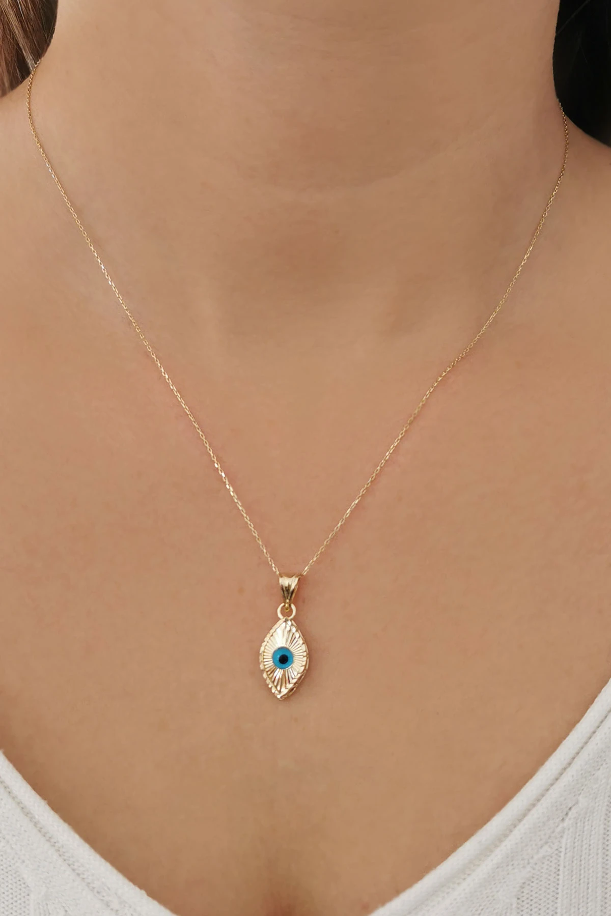 14 Ayar nazardan korunmanın en şık hali olarak tabir edebileceğimiz ışıl ışıl tasarıma sahip günlük kullanıma uygun farklı kolyelerinizle bir arada kombine olarak da kullanabileceğiniz 1.05 gram ağırlığında göz altın kolye ucu.