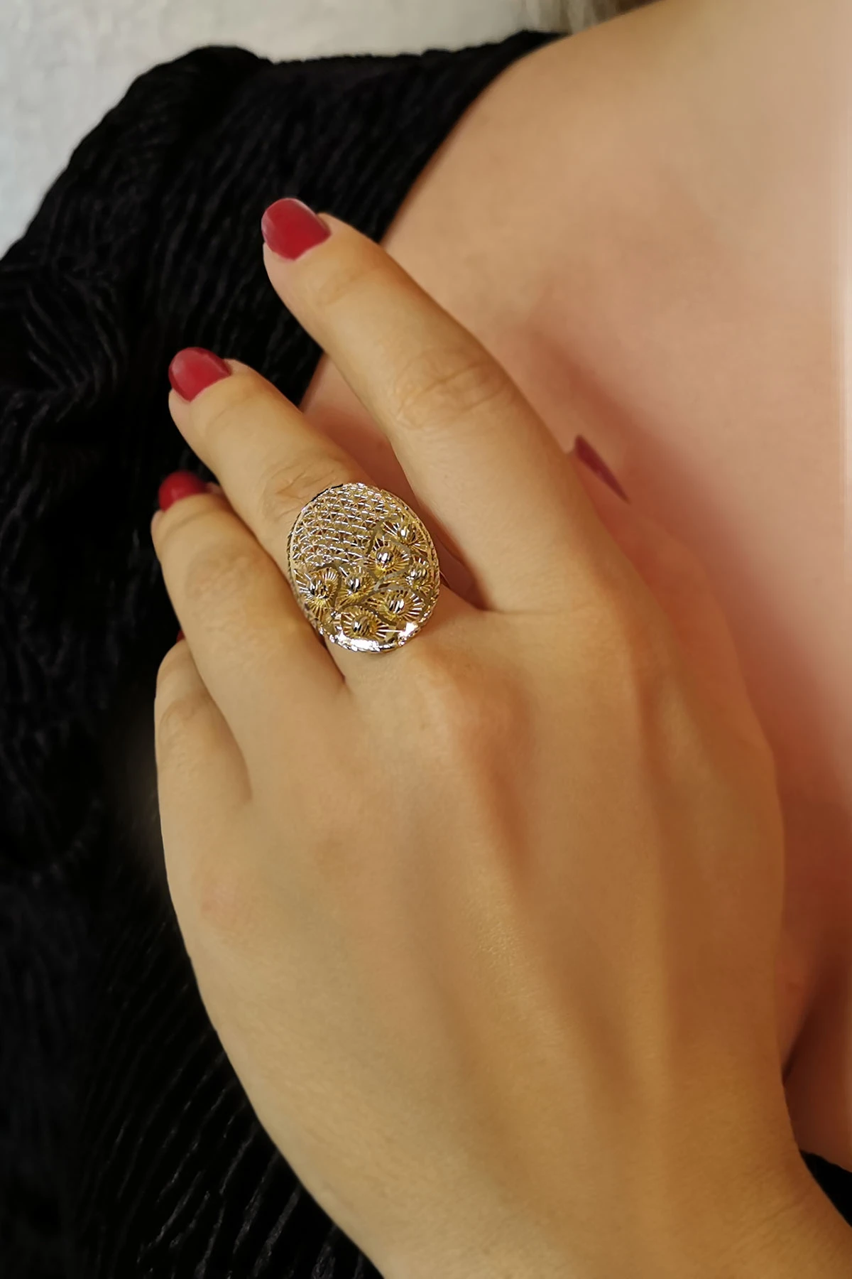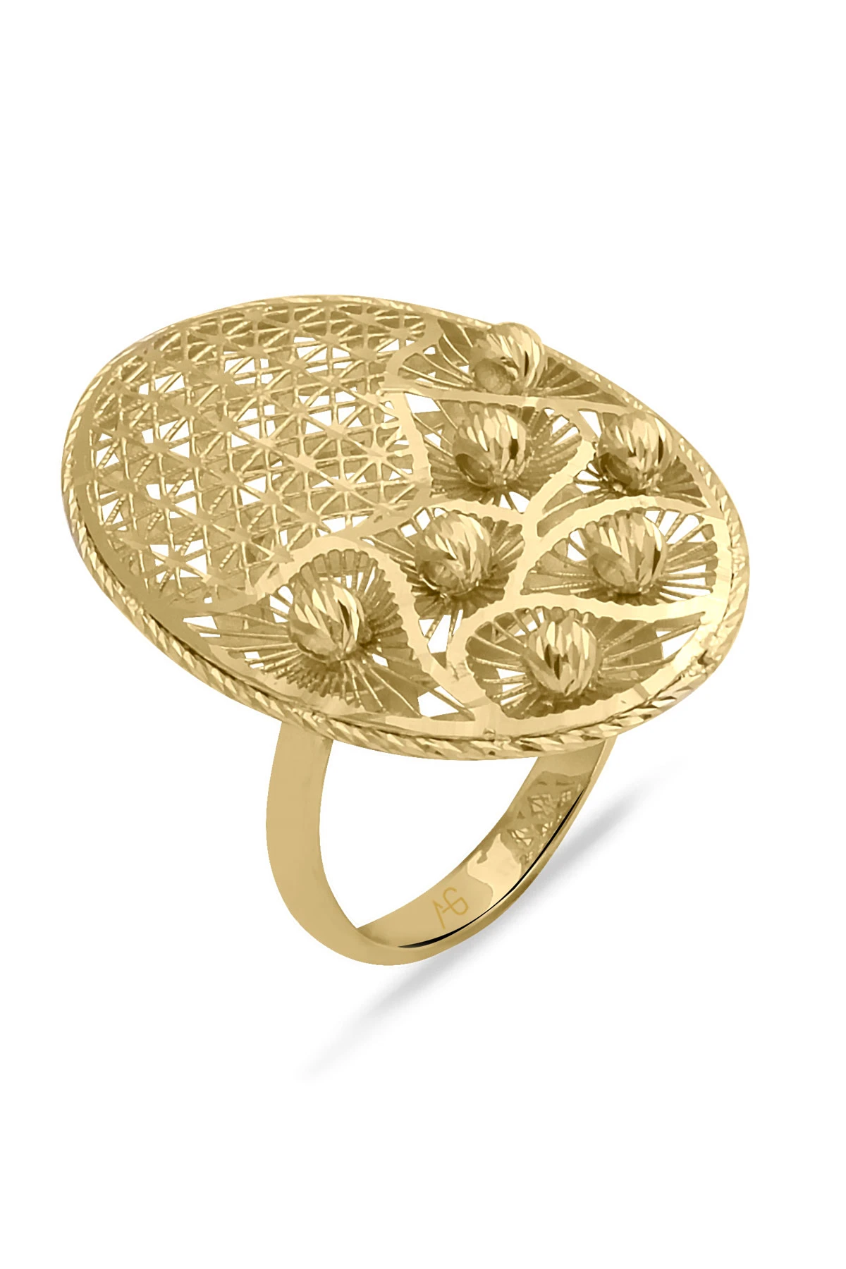 4.90 Gram Ağırlığında Oval Fantazi Model Özel İtalyan Tasarım Dorika Toplu 14 Ayar Altın Kadın Yüzük.