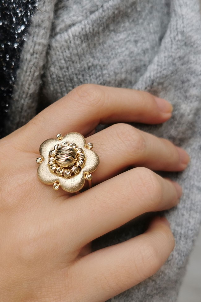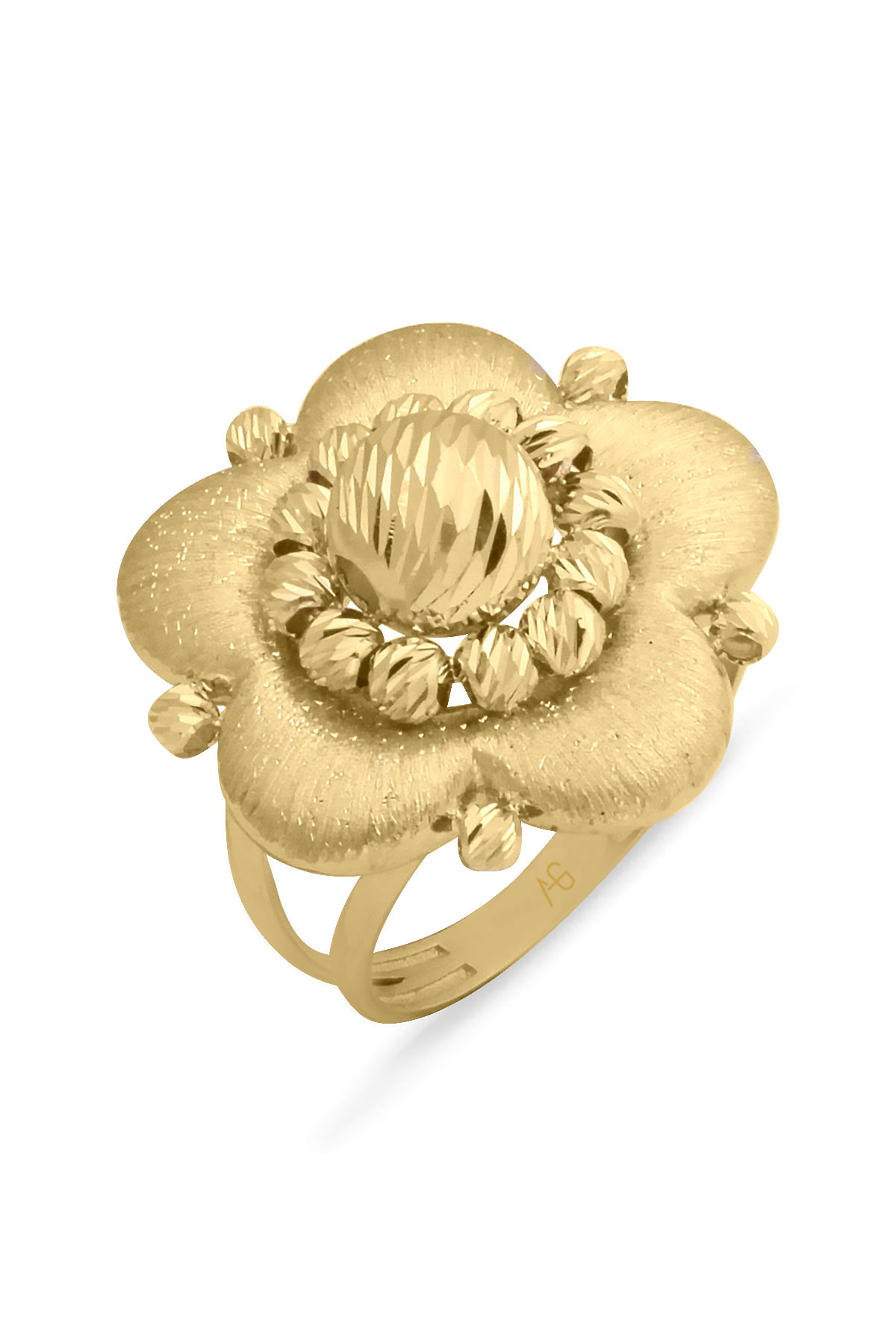 6.30 Gram Ağırlığında Papatya Tasarımlı Top Detayı İle Şık Bir Duruşa Sahip Dolgun 14 Ayar Altın İtalyan Yüzük.
