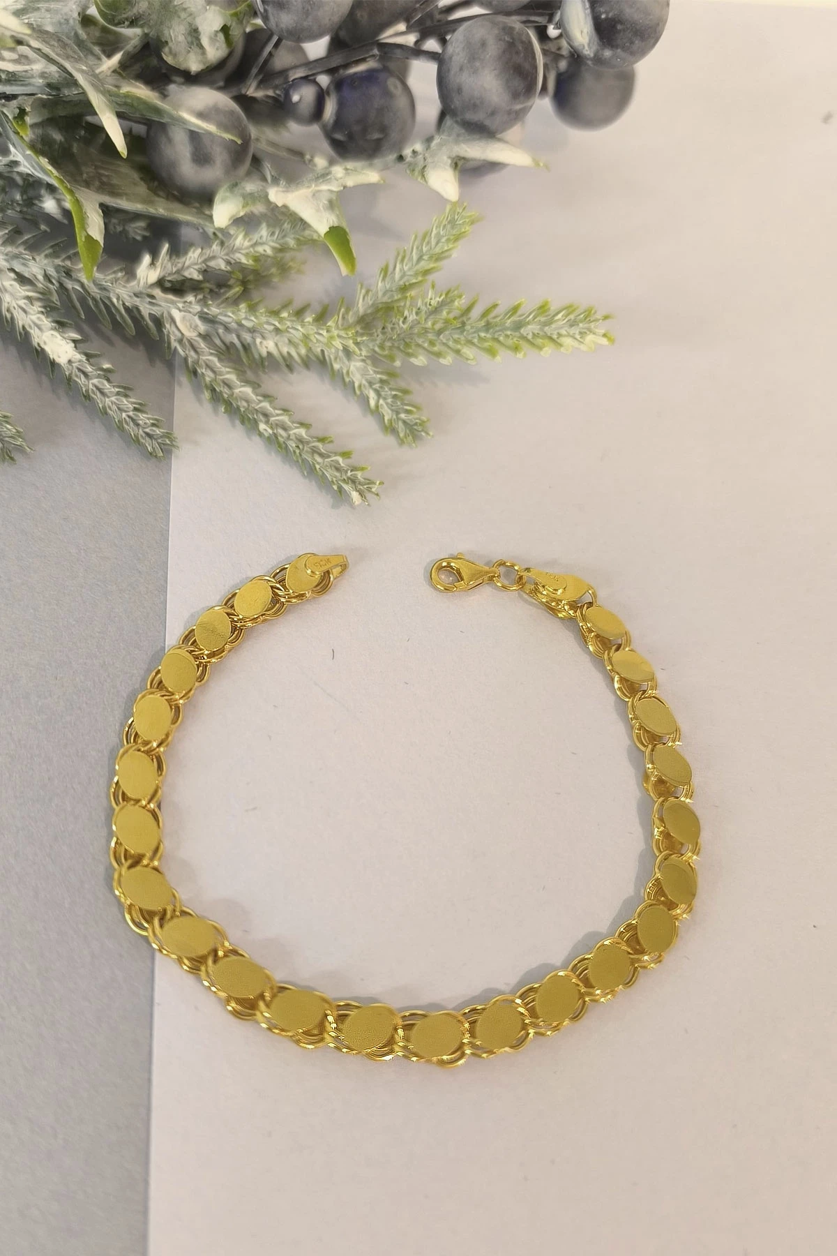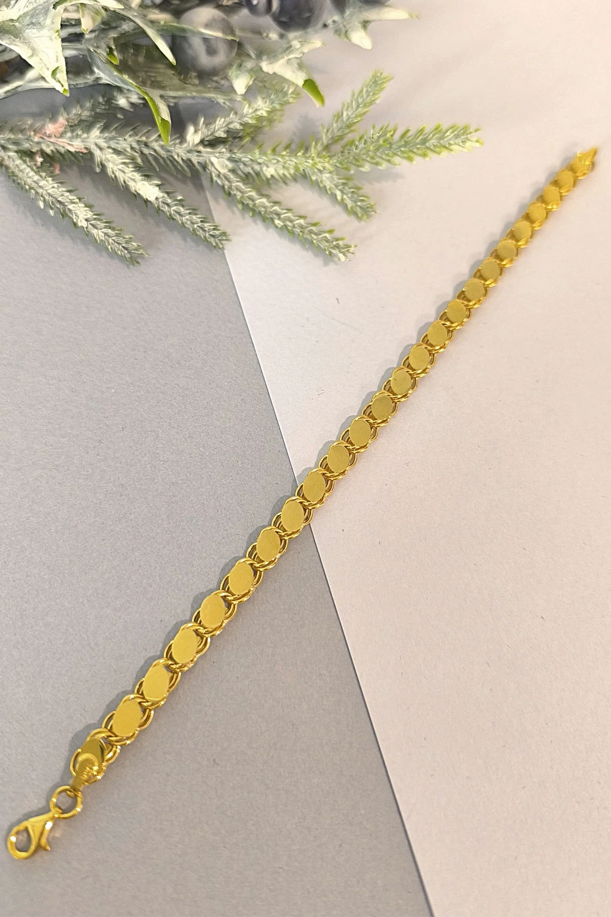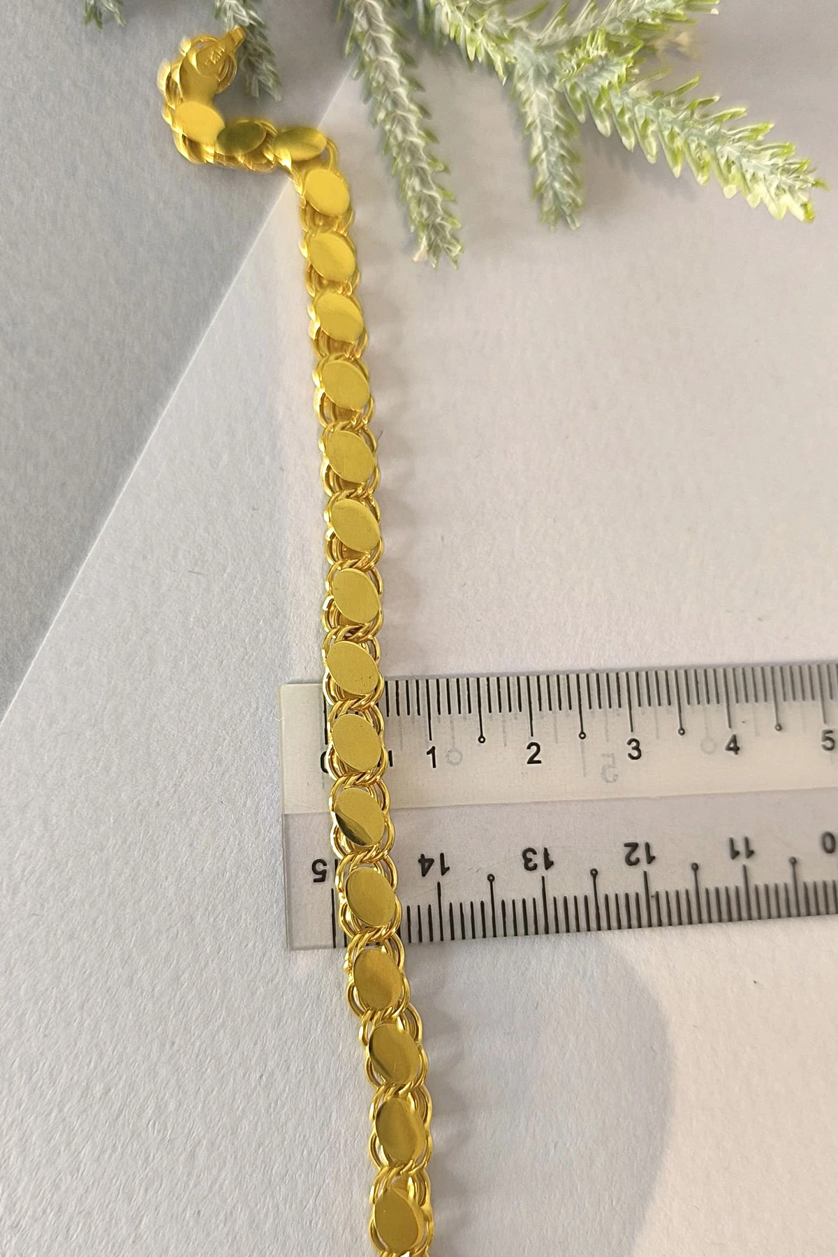 14 Ayar ışıl ışıl gösterişli ve şık duruşa sahip süzme model günlük kullanıma uygun 5.20 gram ağırlığında 19 Cm altın pullu zincir bileklik.