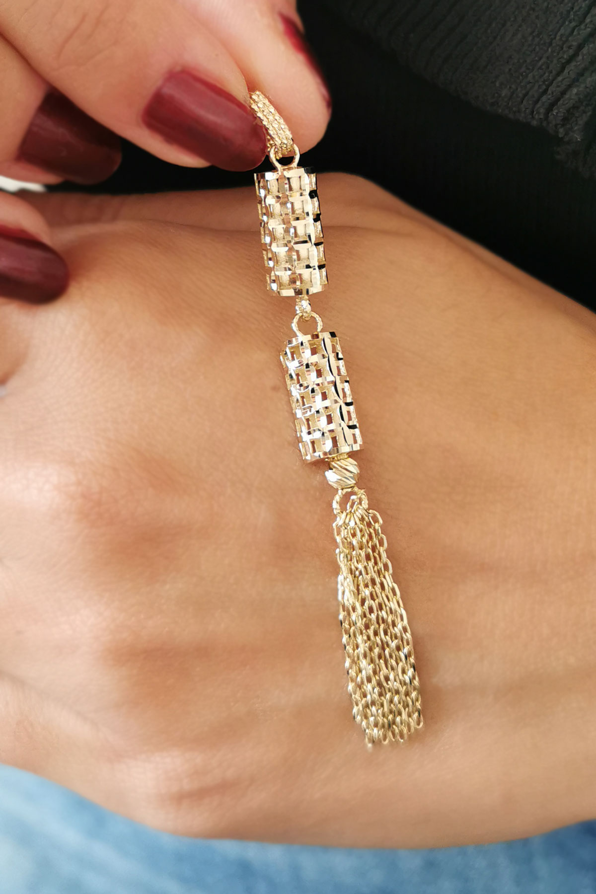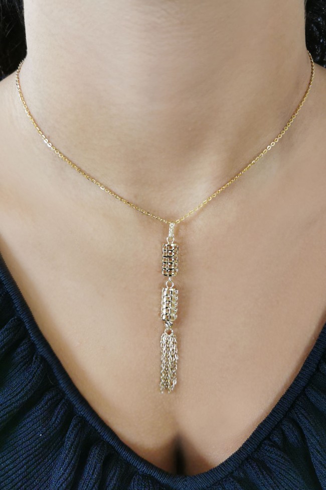 3.20 Gram Ağırlığında Püsküllü Model Özel İtalyan Tasarım Örgü Dorika Toplu 14 Ayar Altın Kadın Fantazi Kolye Ucu.
