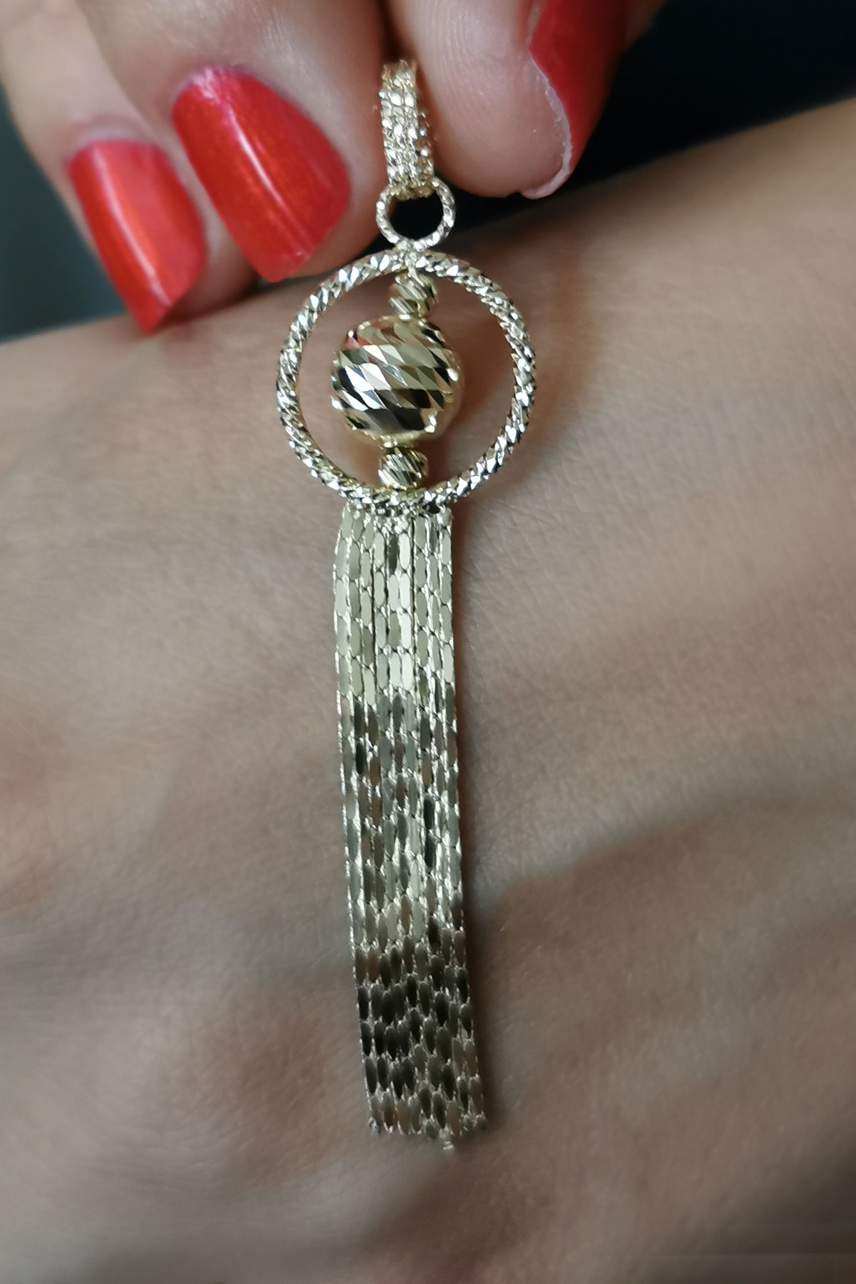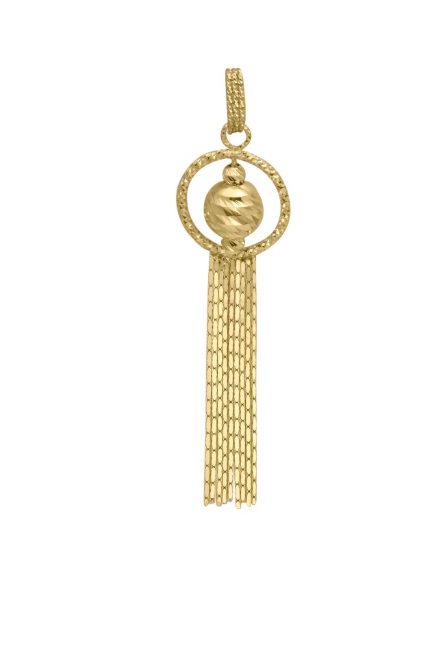 3.20 Gram Ağırlığında Püsküllü Dorika Toplu Model Özel İtalyan Tasarım Olan Şık Detaylara Sahip 14 Ayar Altın Kadın Spor Kolye Ucu.