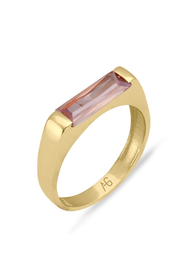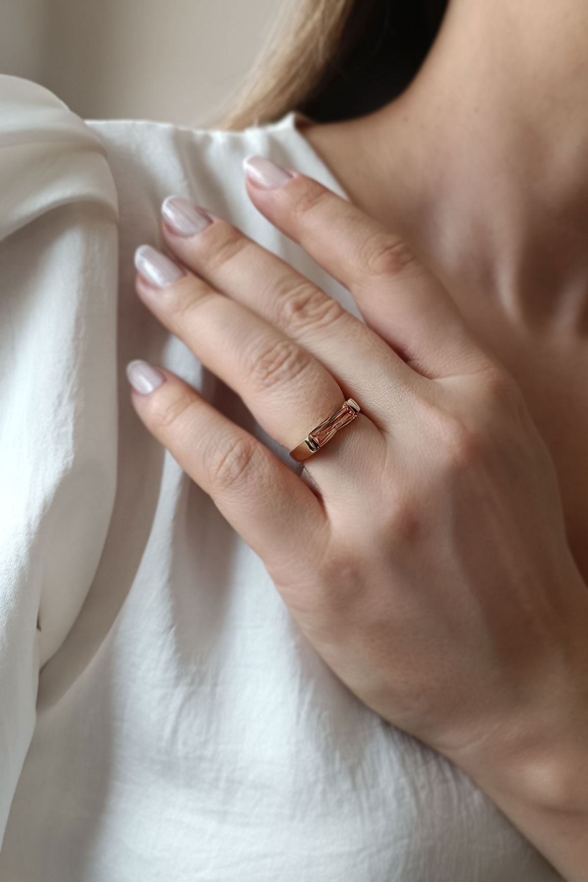 14 Ayar şampanya renk taşlı ışıl ışıl spor ve şık duruşa sahip günlük kullanıma uygun 2.20 gram ağırlığında altın yeni sezon çubuk yüzük.