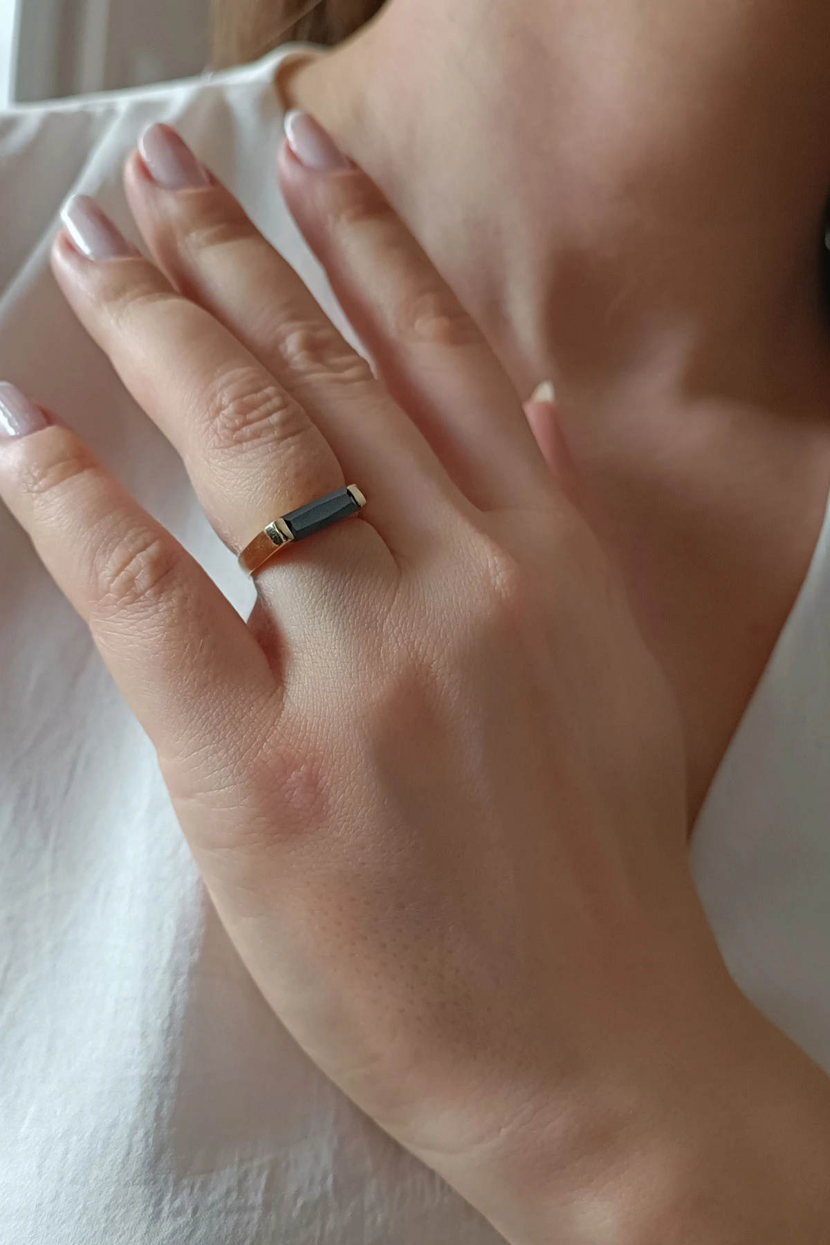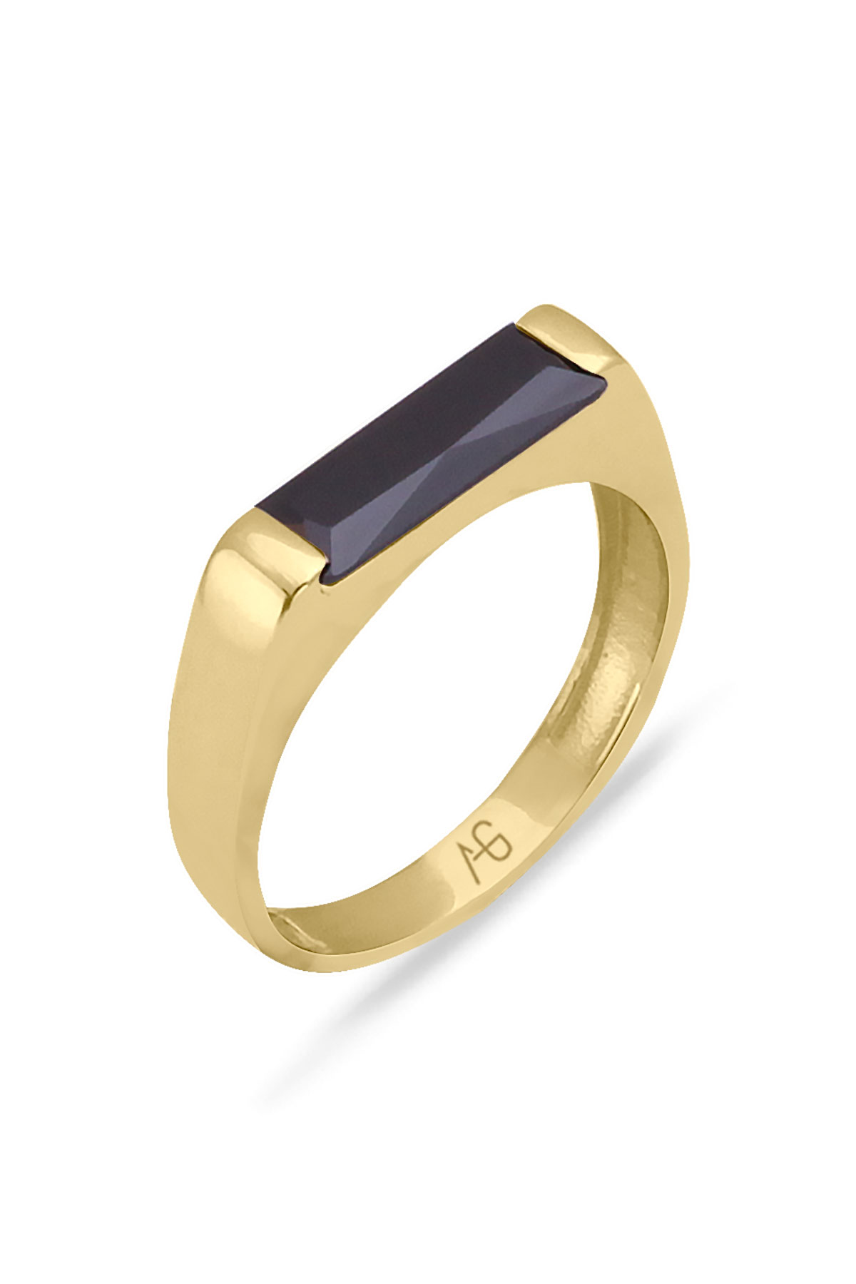 14 Ayar siyah taşlı ışıl ışıl spor ve şık duruşa sahip günlük kullanıma uygun 2.20 gram ağırlığında boyunda altın yeni sezon çubuk yüzük.