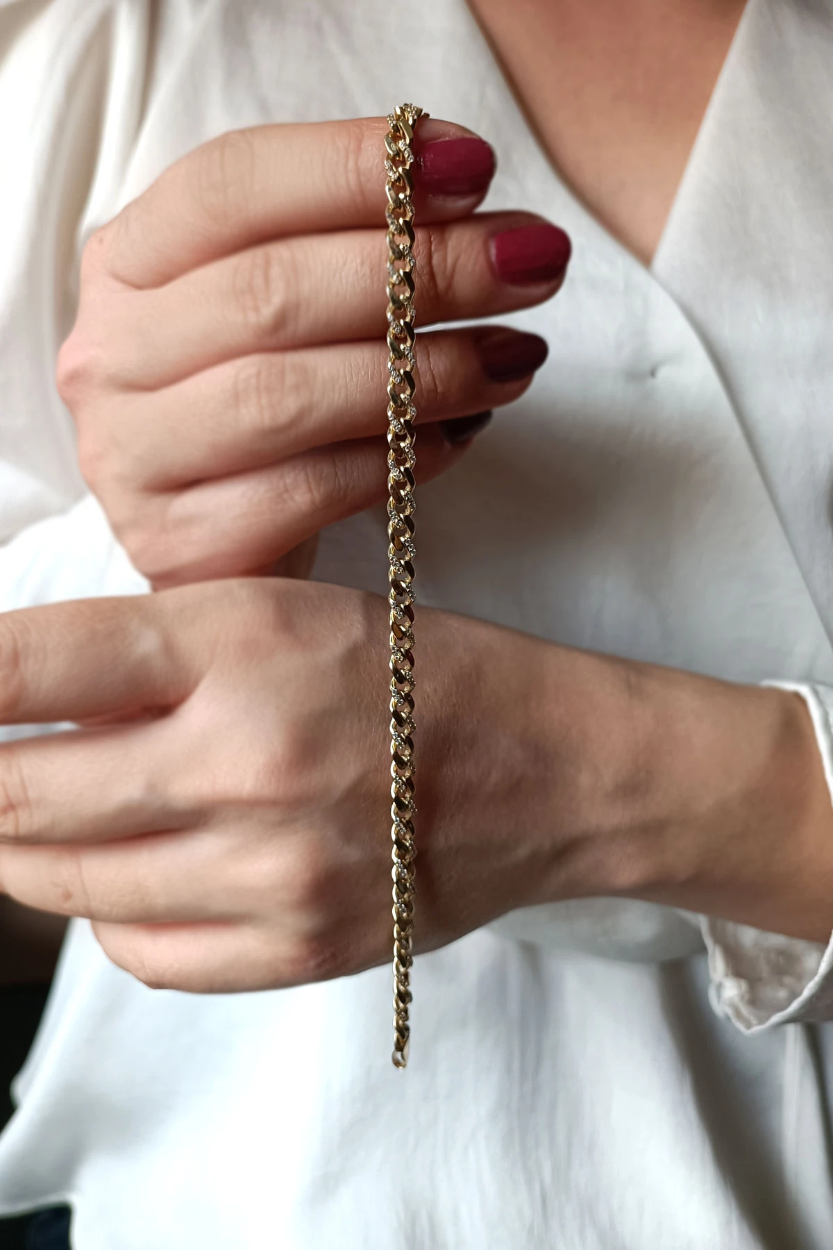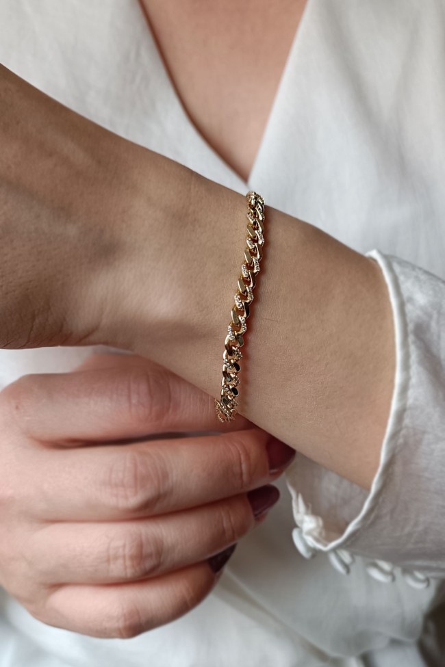 14 Ayar taş detaylı spor duruşa sahip günlük kullanıma uygun 8.40 gram ağırlığında 21 Cm altın gurmet bileklik.