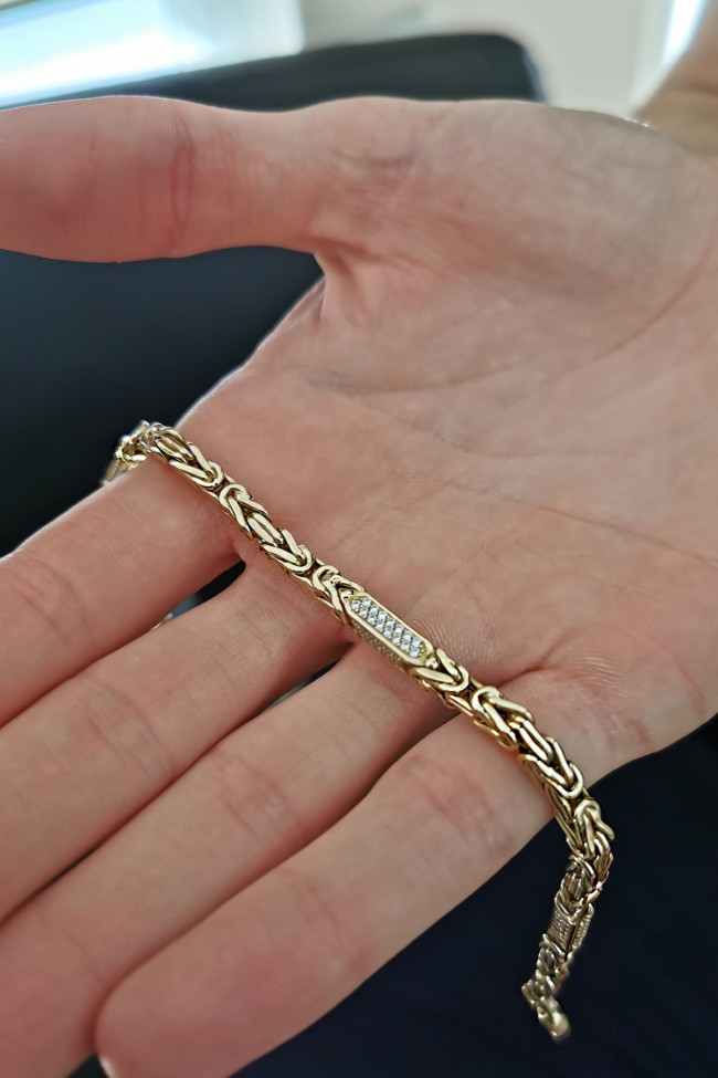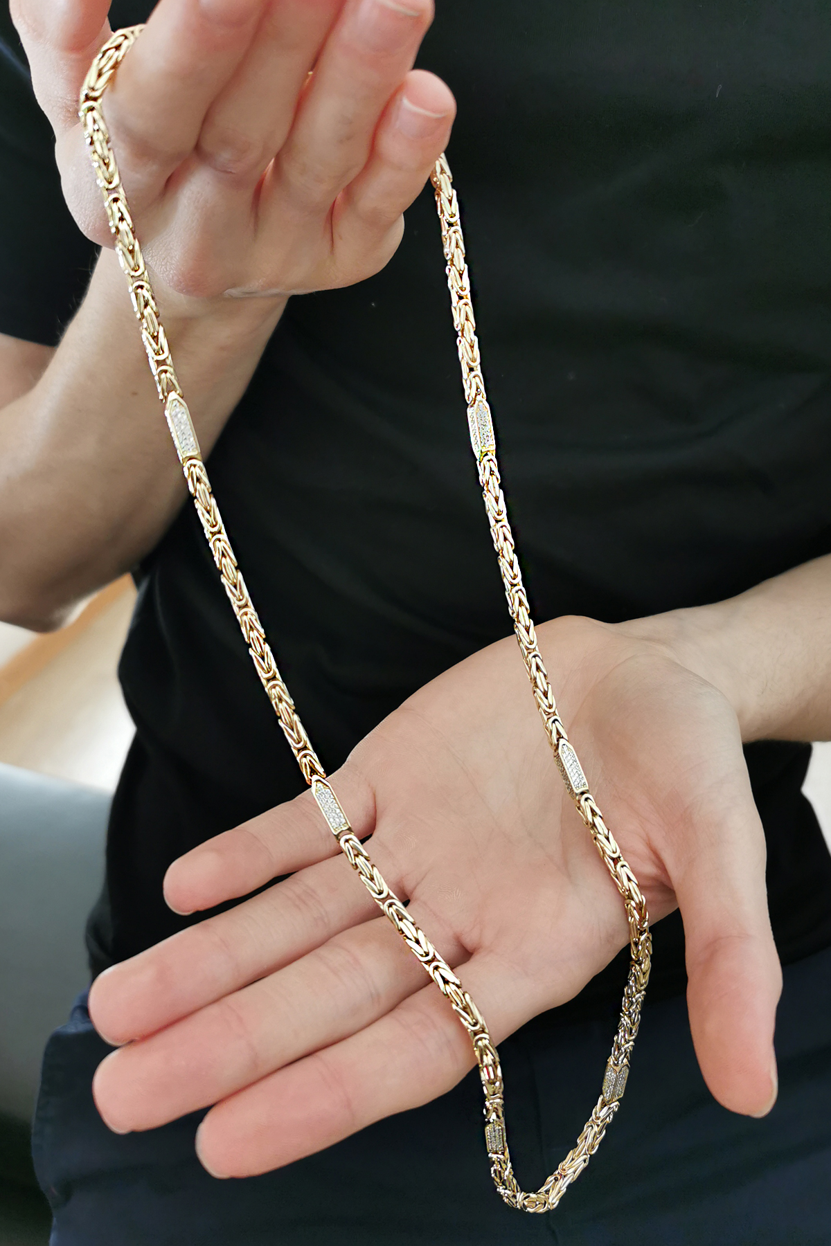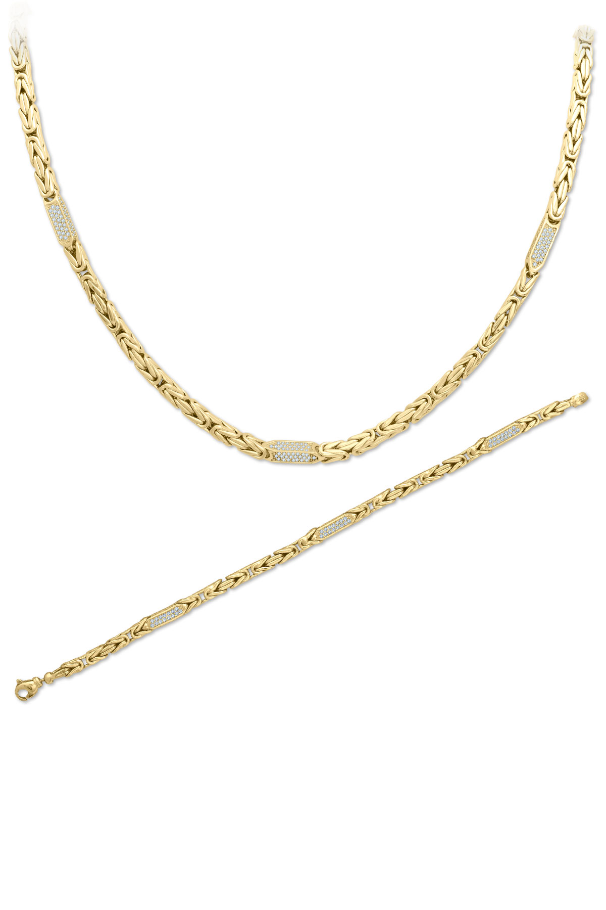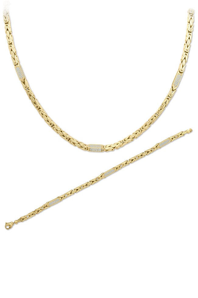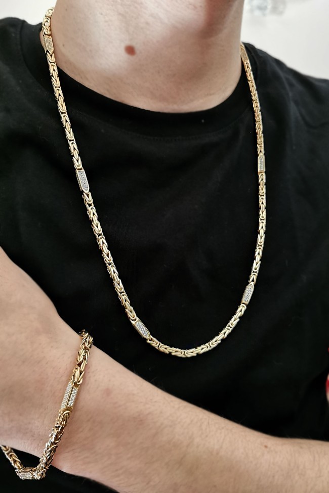 Spor Tasarım Her Sezon Trend 22 Cm Uzunluğunda Bileklik ve 60 Cm Kolyesiyle Havalı Bir Duruşa Sahip14 Ayar Altın Modern Günlük Kullanıma Uygun Taşlı Kral Erkek Bileklik Kolye Takım.