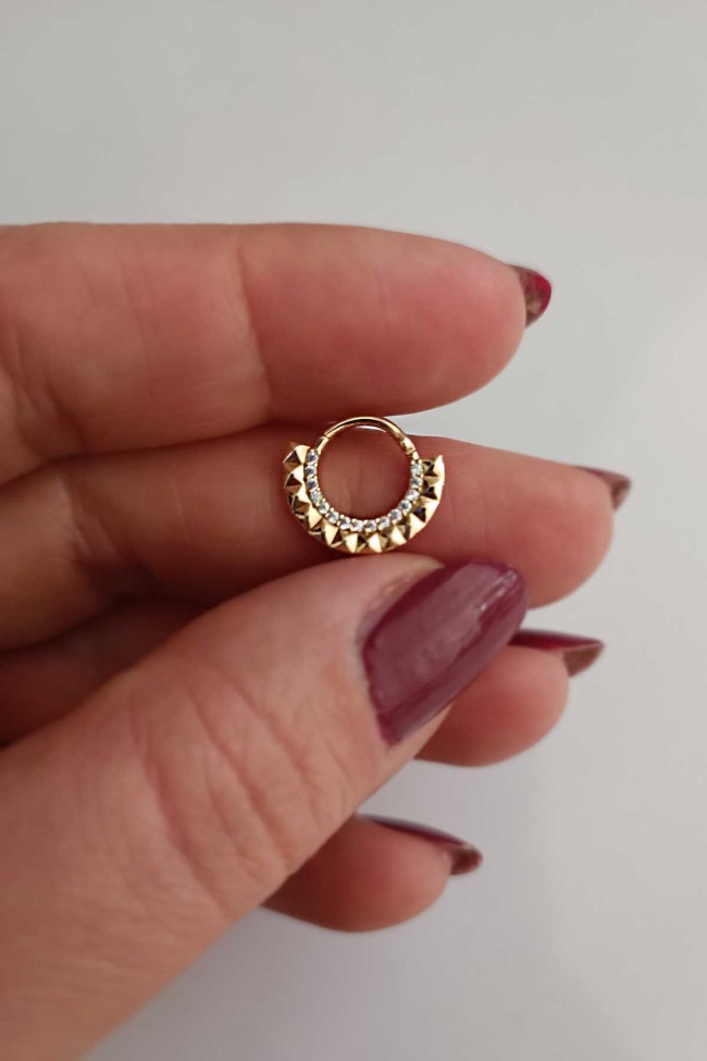 0.75 Gram Ağırlığında Minimal Taşlı Tasarımlı 14 Ayar Modern ve Şık Bir Havaya Sahip  Altın 1.3 Cm Tragus, Kıkırdak Küpe.