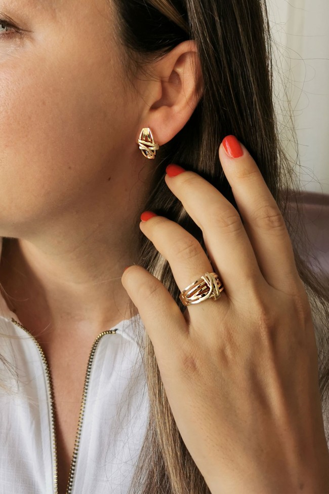 11.20 Gram Ağırlığında Taşsız Bant Geçiş Detaylı Oldukça Hoş Bir Havaya Sahip, Gösterişli Ve Günlük Kullanıma Uygun 14 Ayar Altın Violet Yüzük, Küpe Takım.
