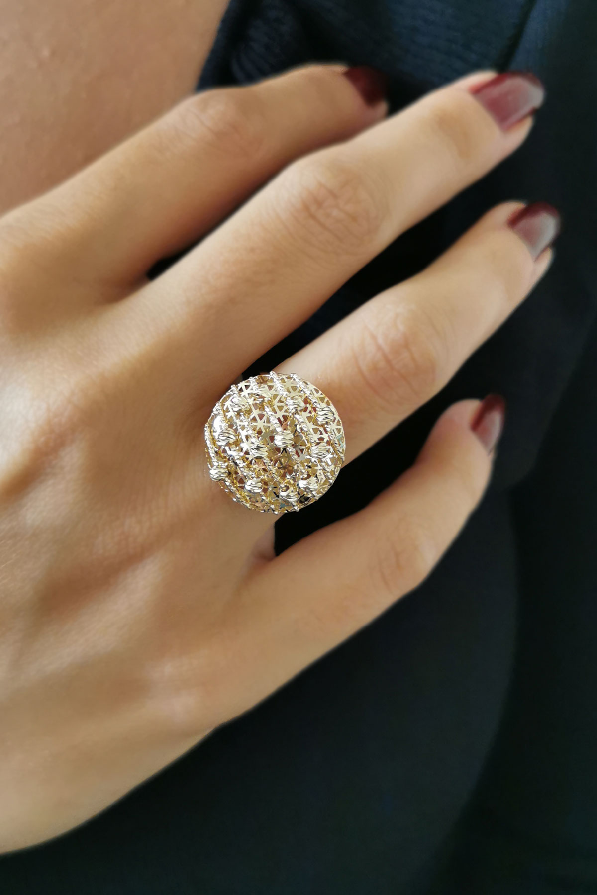 4.20 Gram Ağırlığında Yuvarlak Formu Ve Modern Duruşu İle Işıltılı Dorika Toplarla Tasarlanmış Oldukça Şık Bir Duruşu Olan 14 Ayar Altın Yüzük.