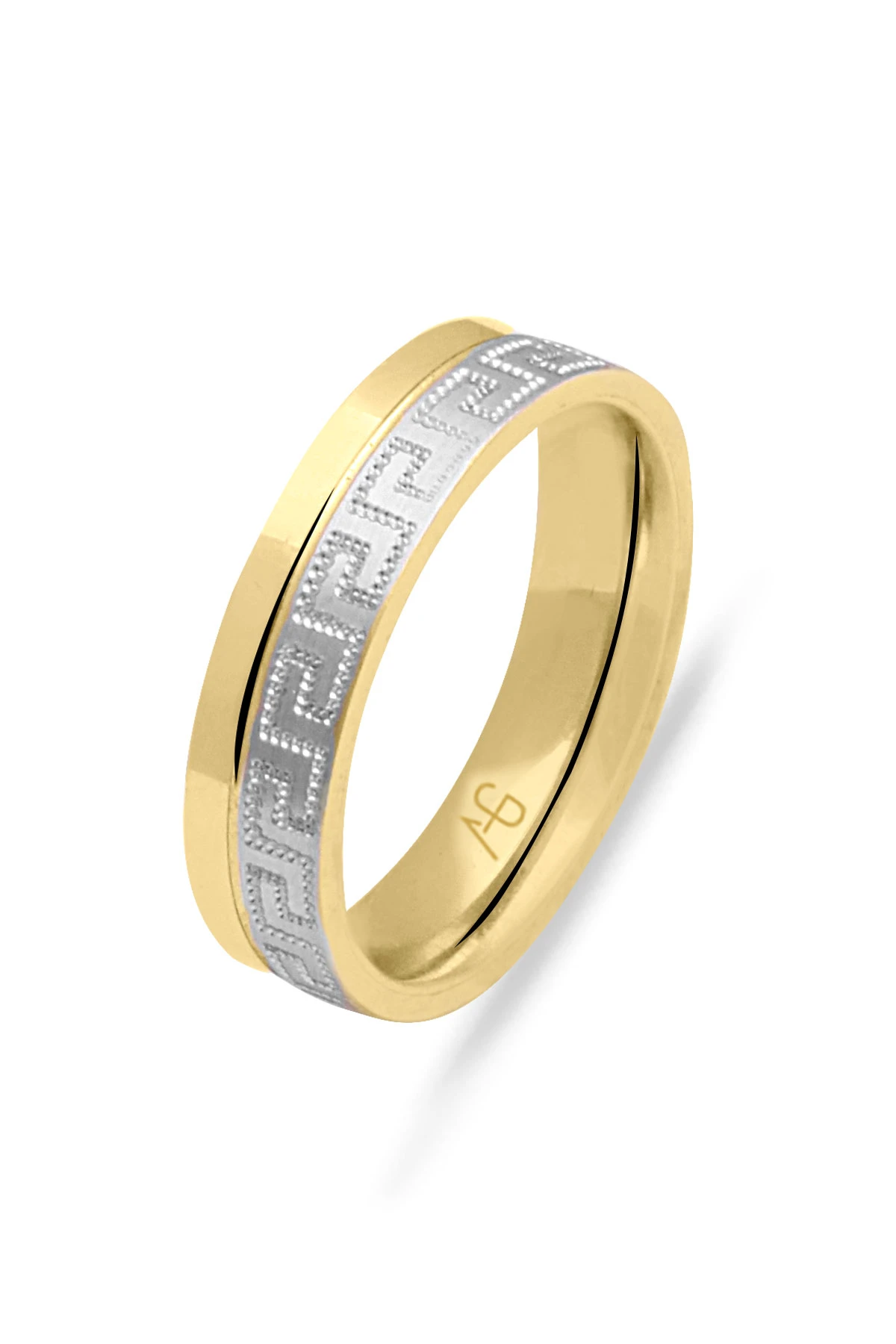 14 Ayar 3.20 gram ağırlığında çift renk grek desenli şık ve günlük kullanımda sizi oldukça rahat ettirecek unisex kullanıma uygun, modern bir tasarıma sahip evlilik, nişan alyansı olarak da  tercih edebileceğiniz altın alyans.