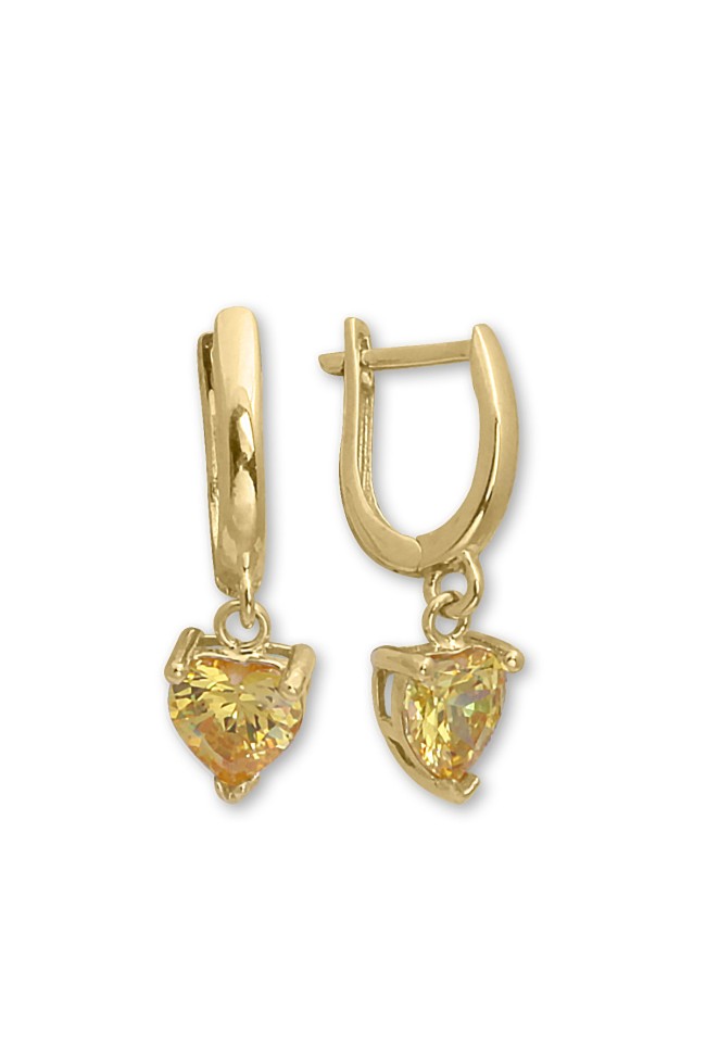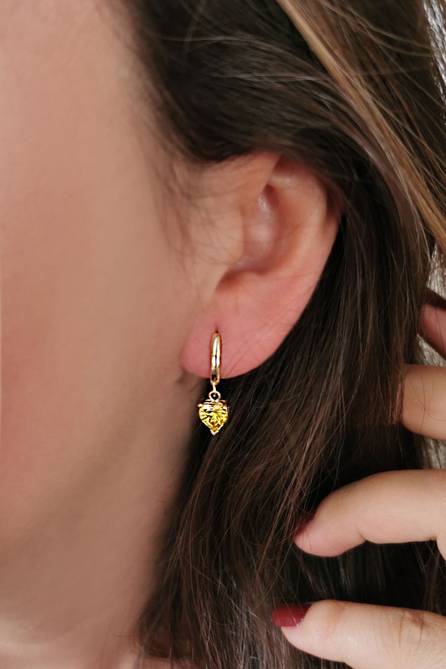 2.70 Gram Ağırlığında 2.2 Cm Citrine Kalp Taşlı Sallantılı Minimal Model Zirkon Taşlı Günlük, Modern Ve Şık Bir Duruşa Sahip 14 Ayar Altın Tasarım Küpe.