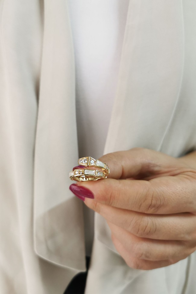 14 Ayar gösterişli ve şık tasarımı ile spor duruşa da sahip günlük kullanıma uygun 4.60 gram ağırlığında sedef mineli altın yüzük.