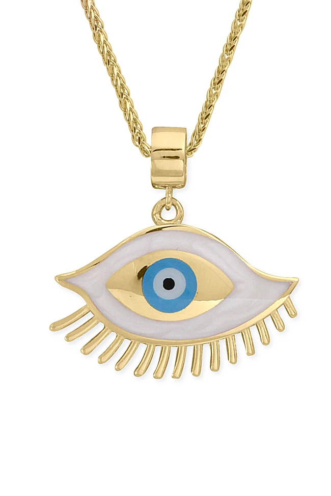 14 Ayar altın 4.70 gram ağırlığında şık ve gündelik kullanıma uygun 2.5 cm boyunda sedef mineli göz modeliyle olduça şık bir duruşa sahip nazar kolye.