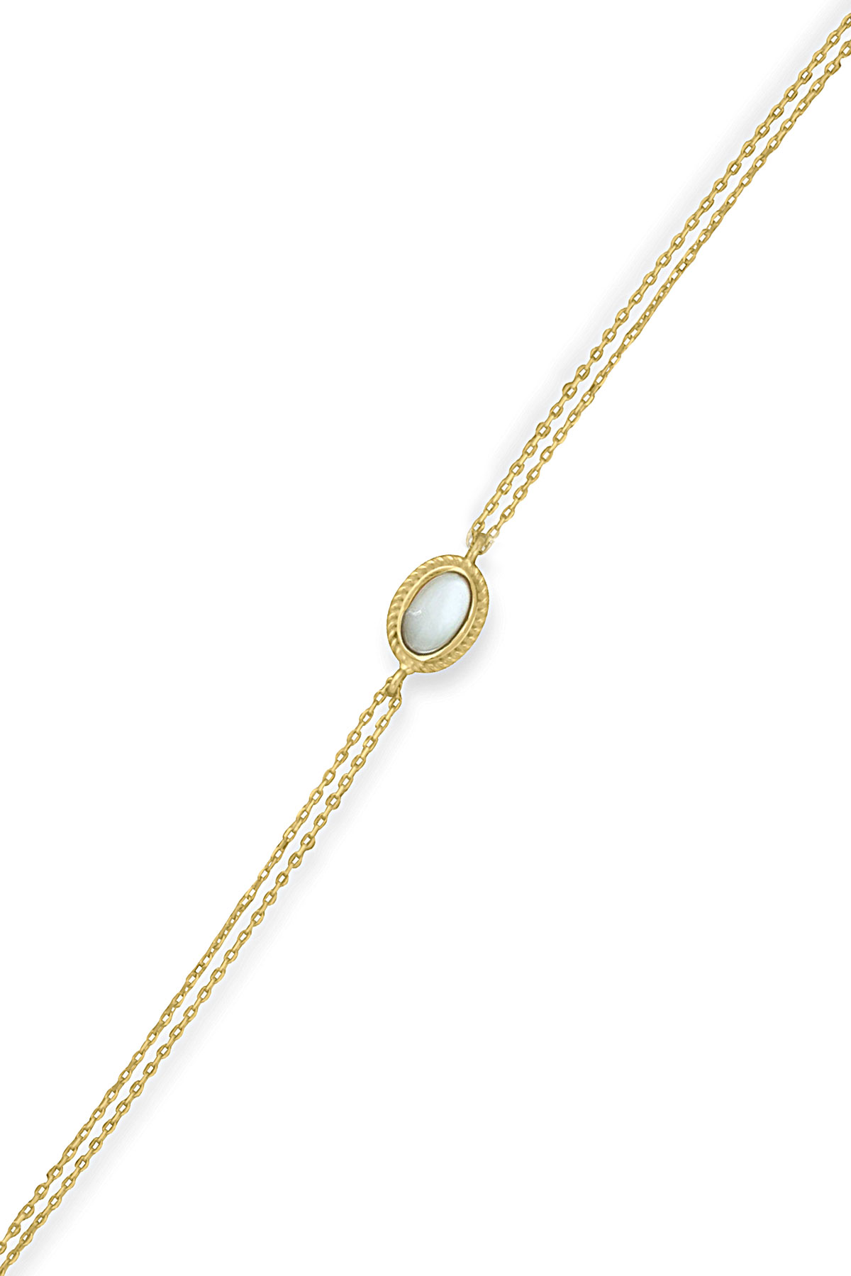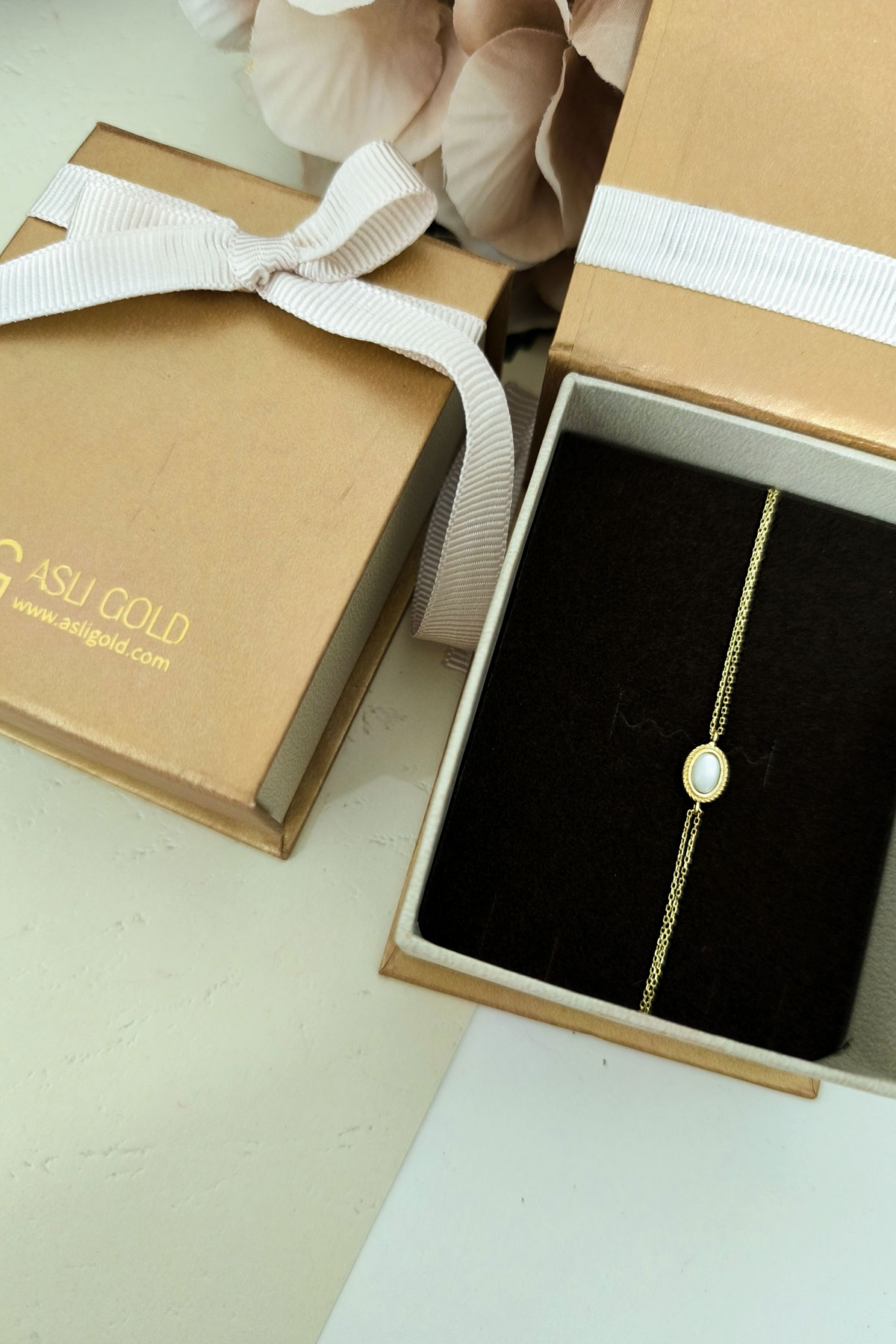 Minimal Şık Modeliyle 1 Cm Orta Göbek Boyunda 1.55 Gr. Ağırlığında 14 Ayar Altın Sedef Taşlı Hediyelik Bileklik.
