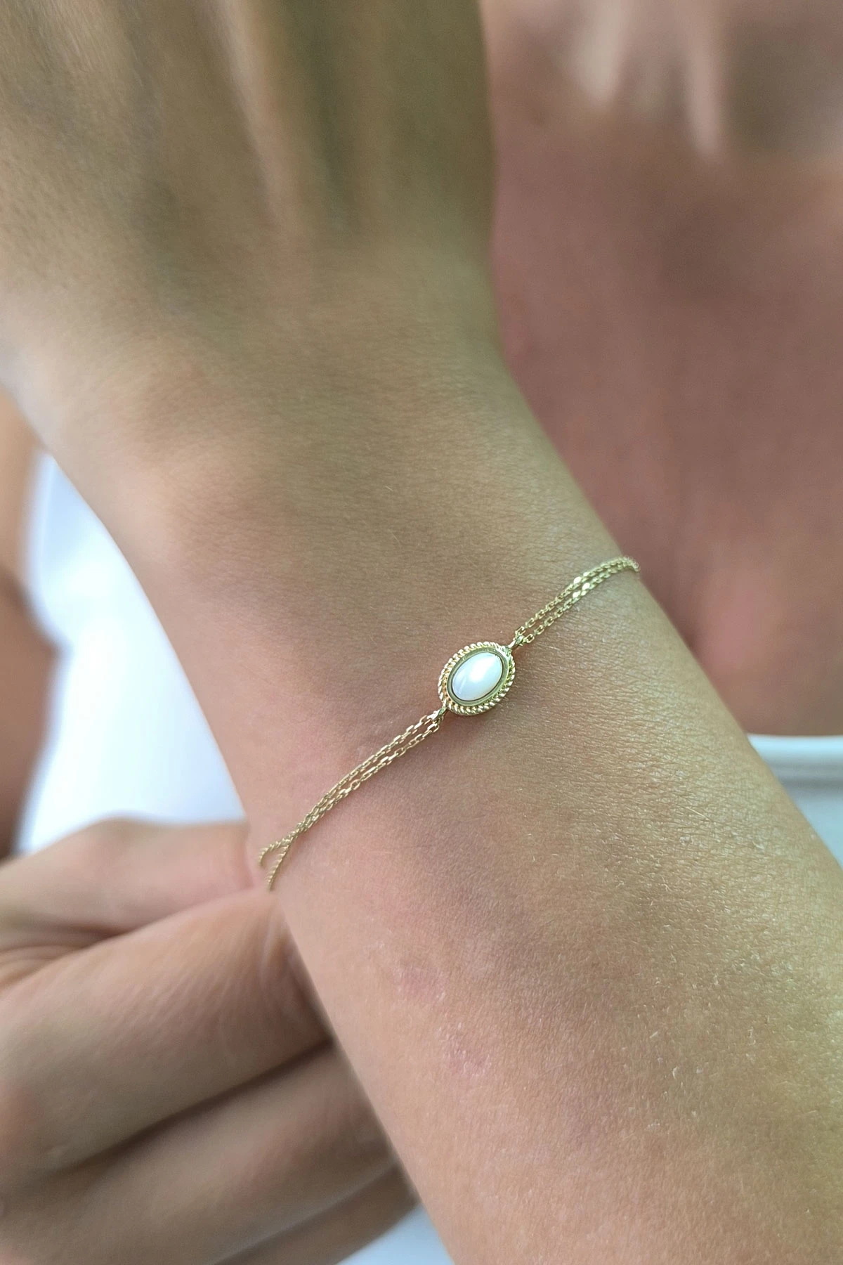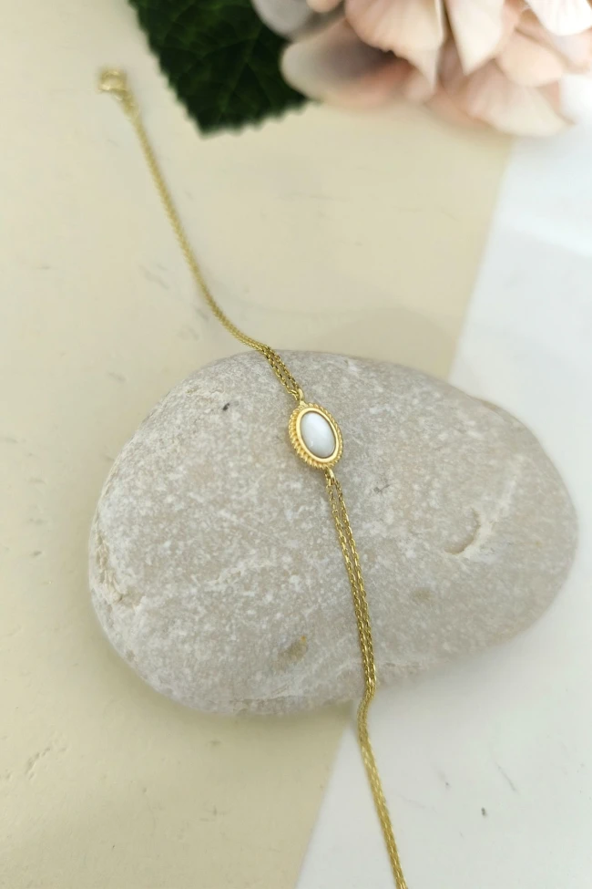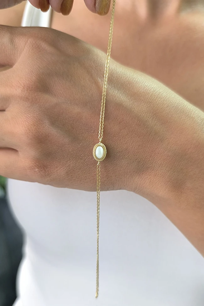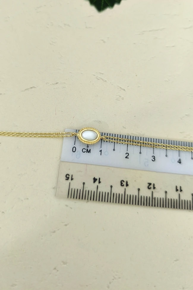 Minimal Şık Modeliyle 1 Cm Orta Göbek Boyunda 1.55 Gr. Ağırlığında 14 Ayar Altın Sedef Taşlı Hediyelik Bileklik.
