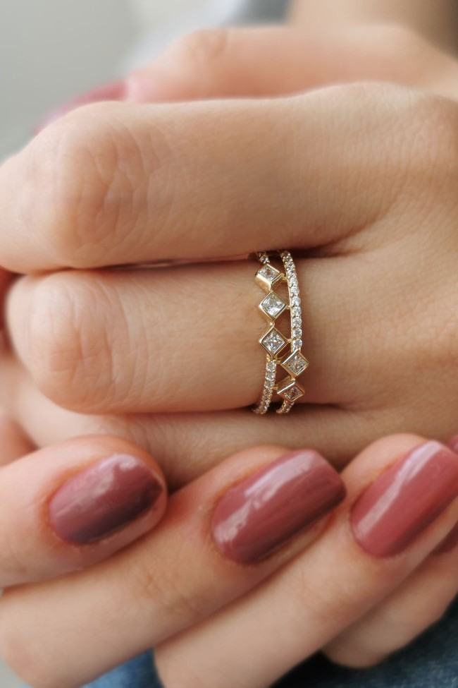 14 ayar sarı altın taşlı çift bant tasarımıyla günlük kullanıma uygun parmağınızda stilinize hava katacak 2.40 gram ağırlığında Serena yüzük.