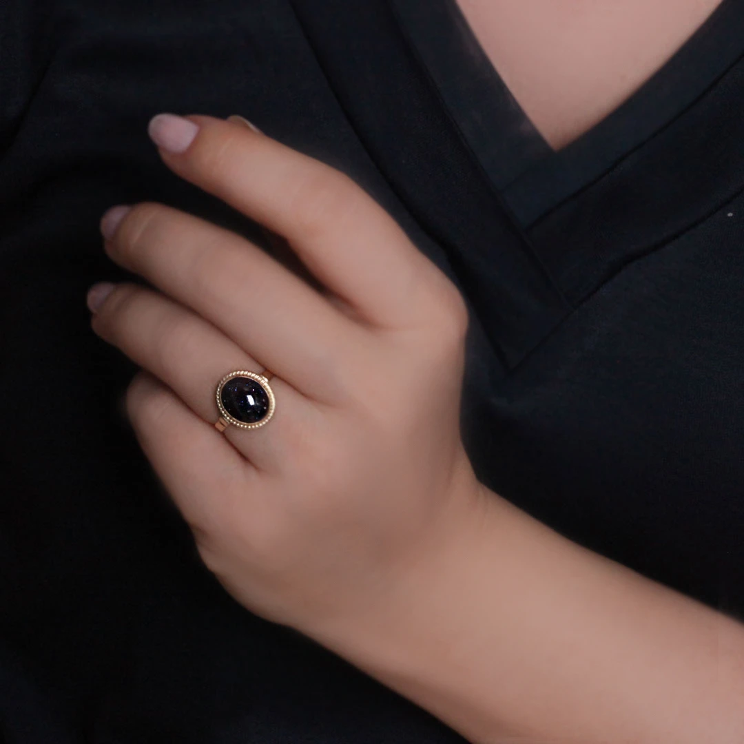 14 Ayar nostalji tasarımına eşlik eden simli siyah onyx taş detaylı şık ve ışıltılı tasarımlara düşkün kadınların severek kullanacakları elegan duruşa sahip günlük kullanıma uygun 2.20 gram ağırlığında altın yüzük.