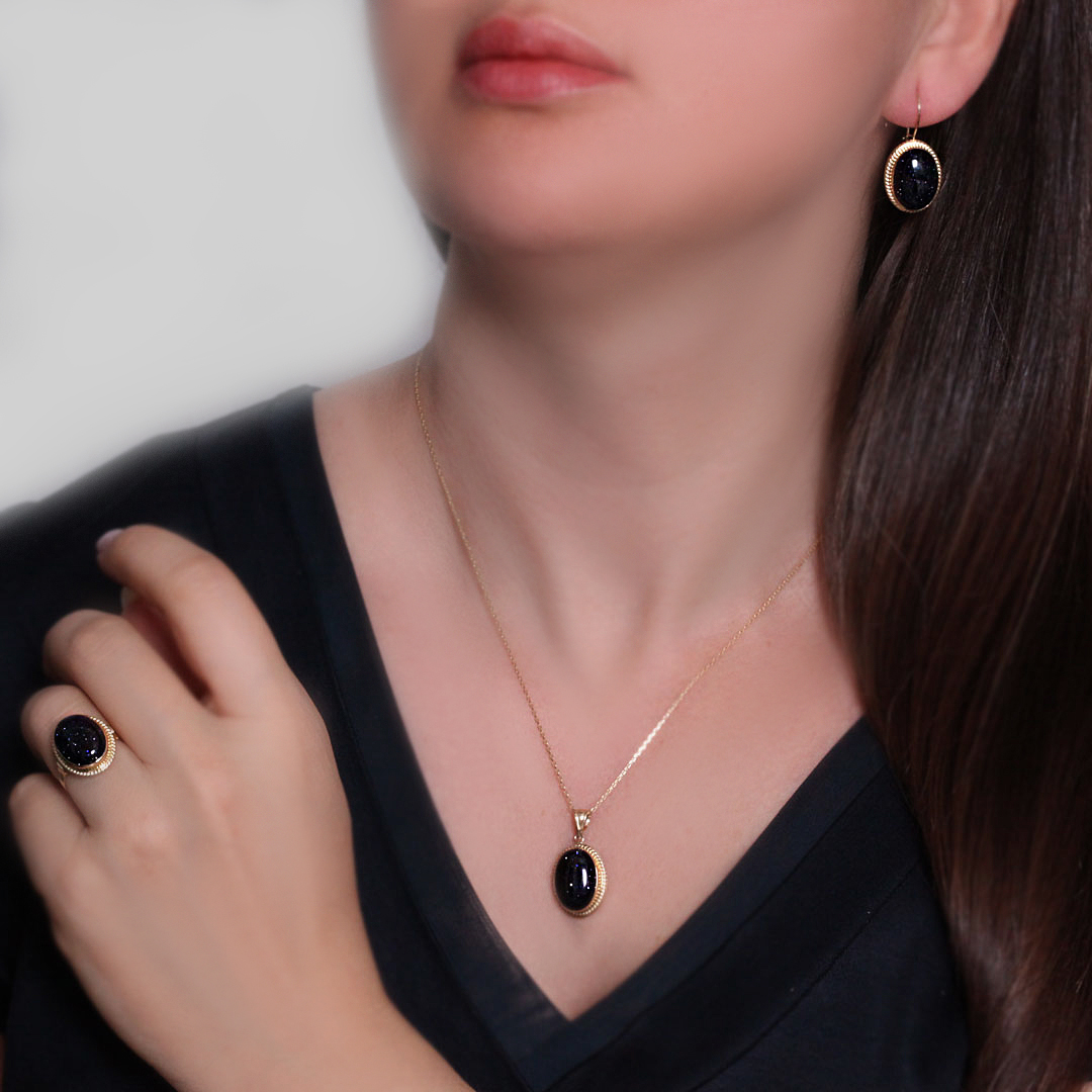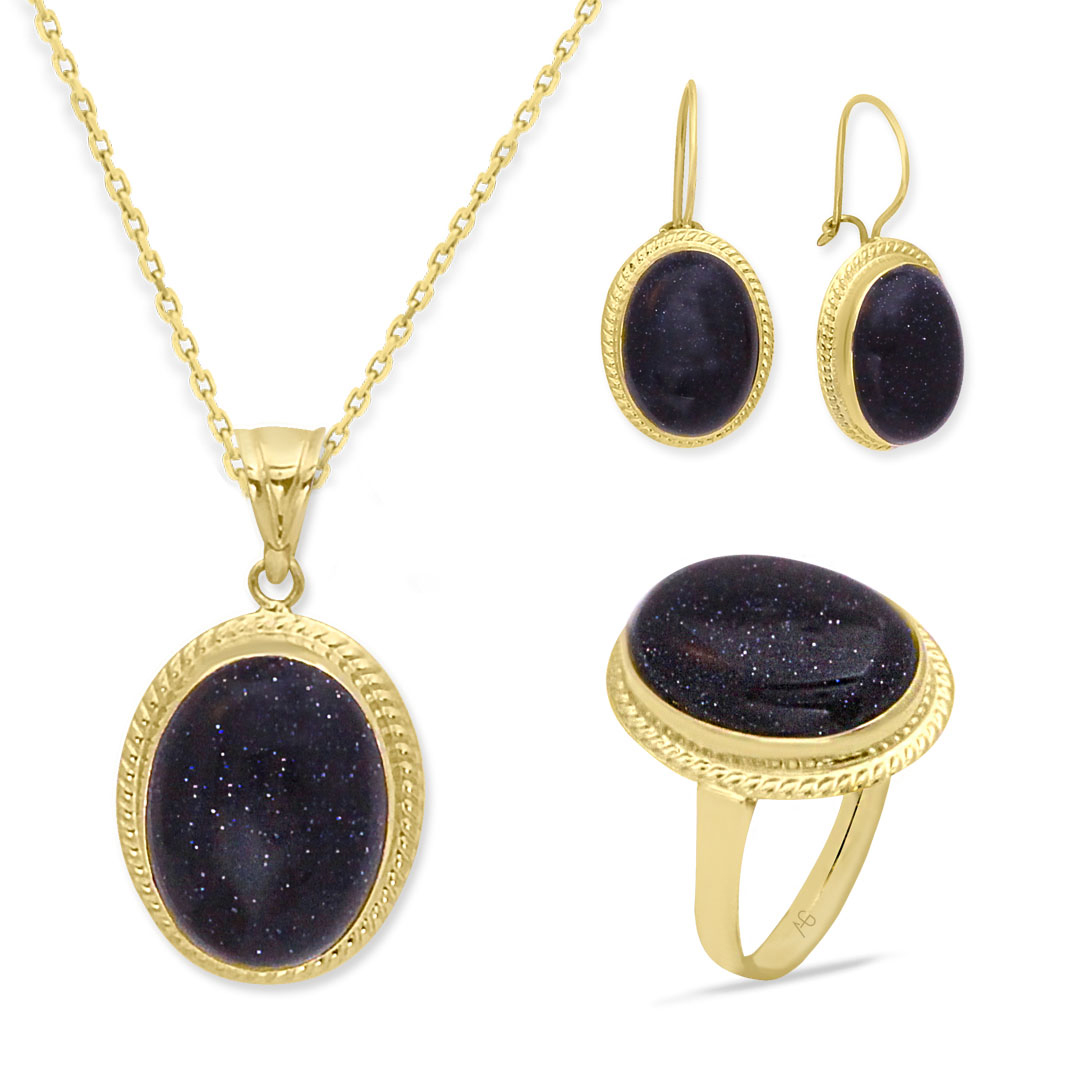 14 Ayar nostalji tasarımına eşlik eden simli büyük oval boy onix taş detaylı şık ve ışıltılı tasarımlara düşkün kadınların severek kullanacakları elegan duruşa sahip günlük kullanıma uygun 12.00 gram ağırlığında altın kolye, küpe yüzük takım.