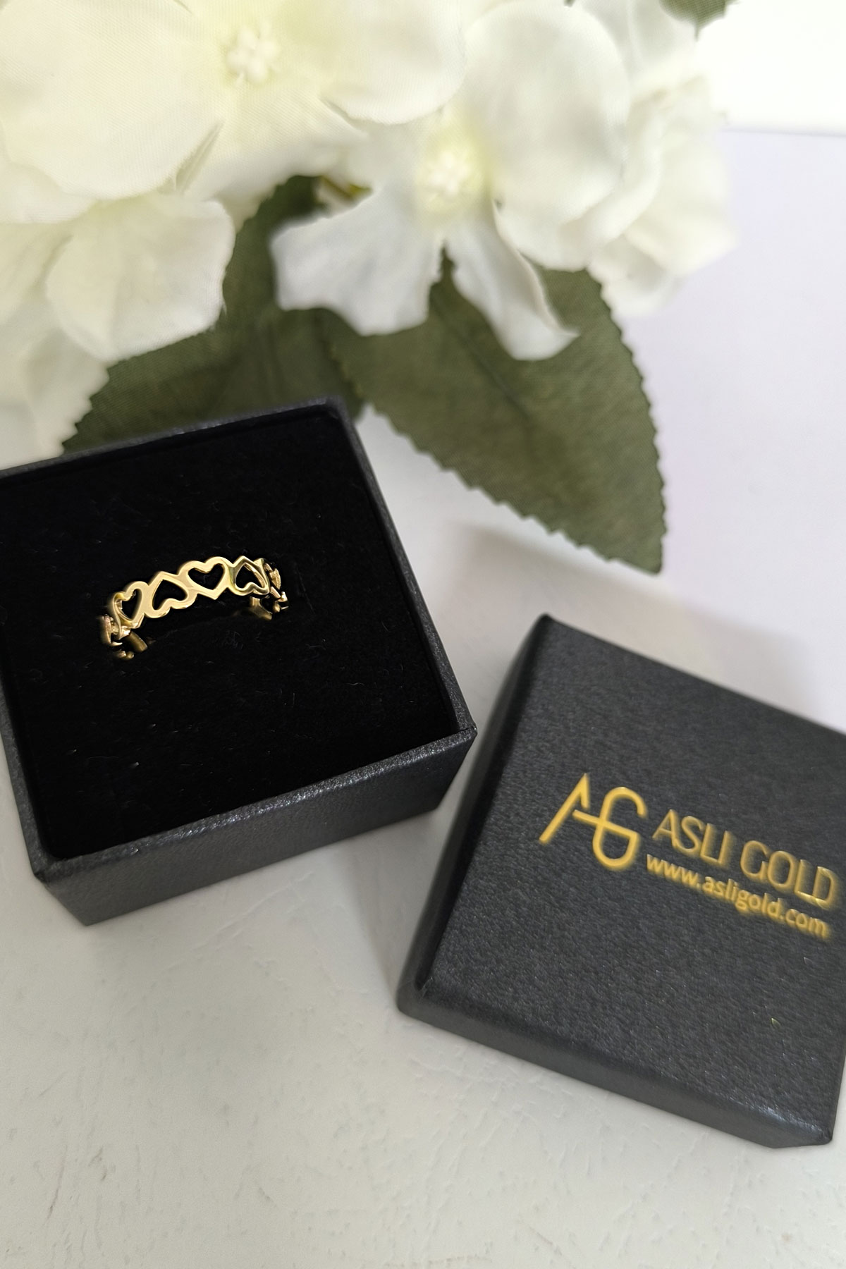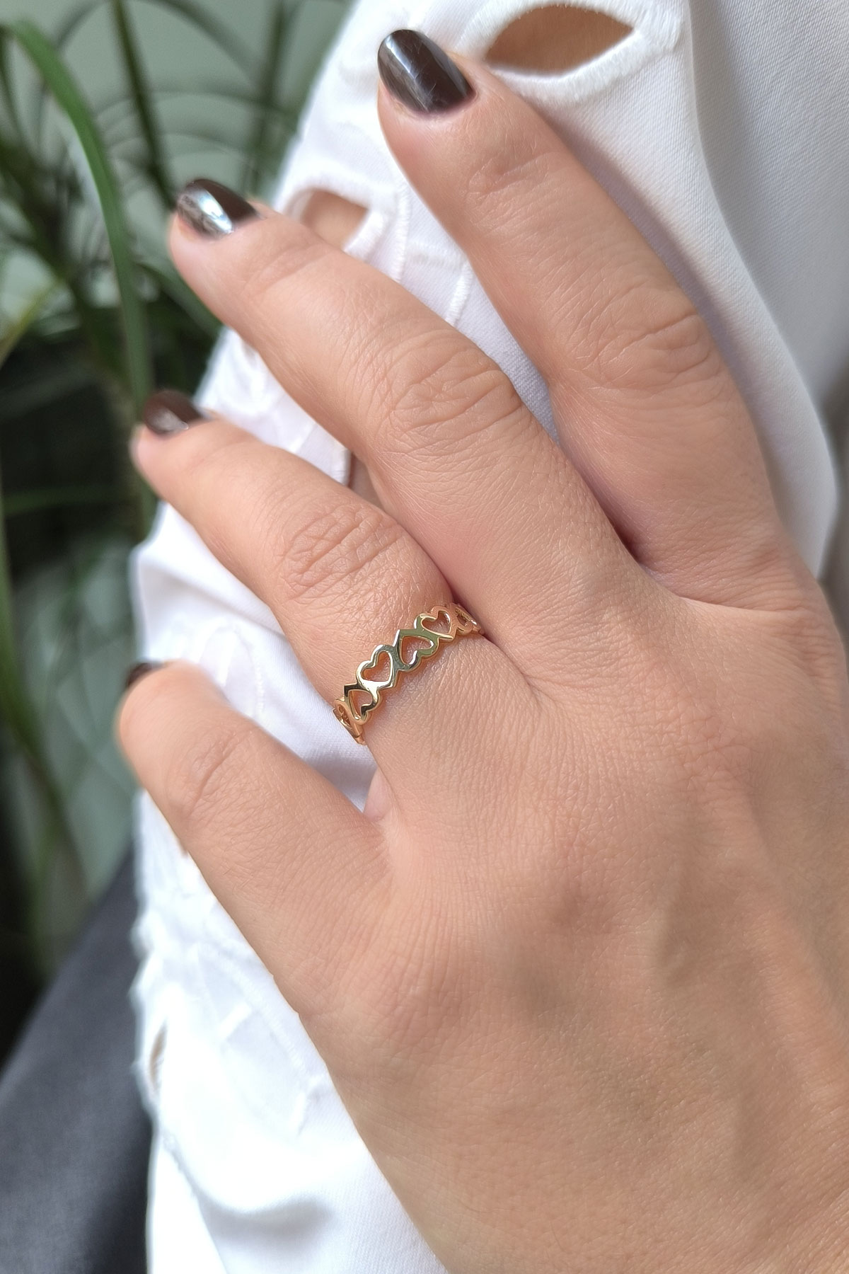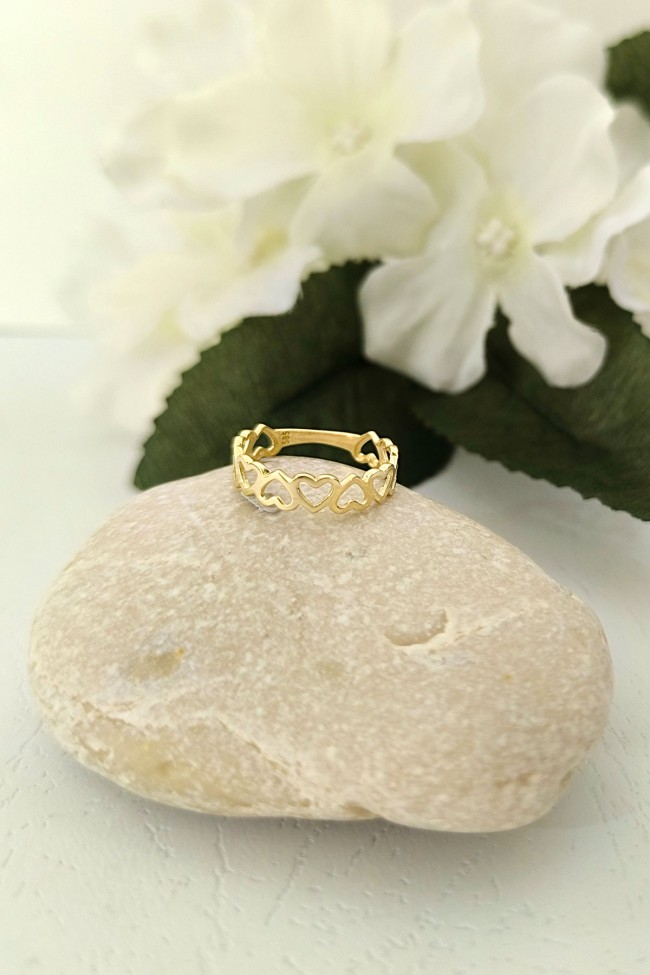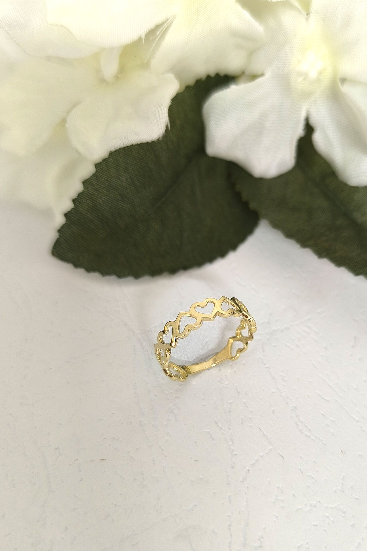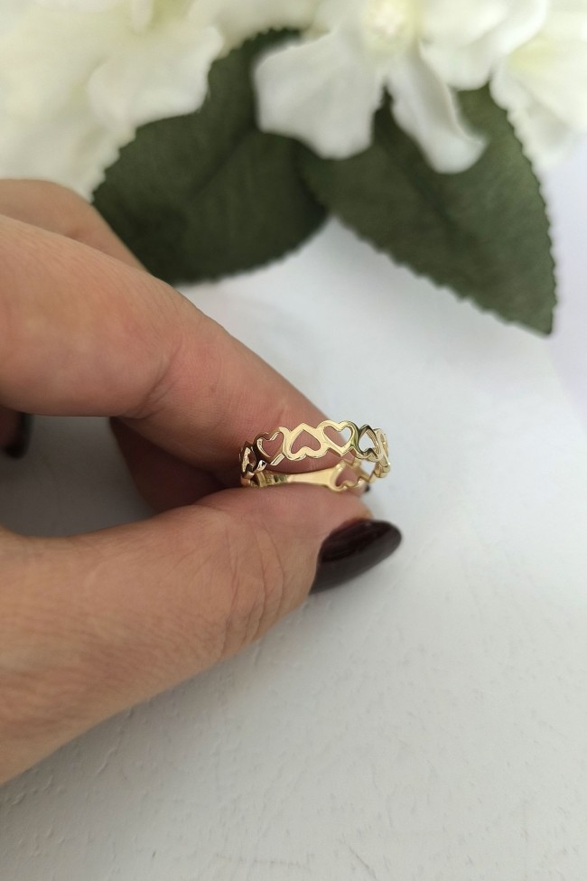 14 ayar sarı altın günlük kullanıma uygun 1.40 gram ağırlığında sıralı kalp taşsız altın yüzük.