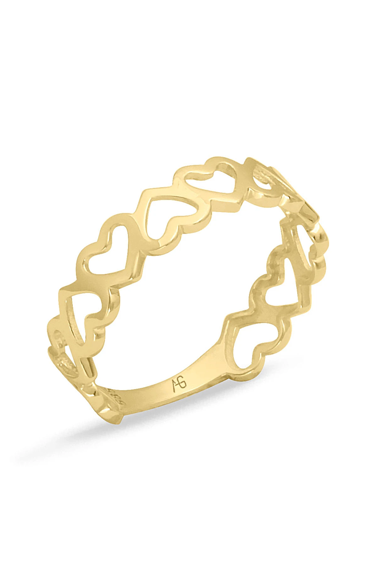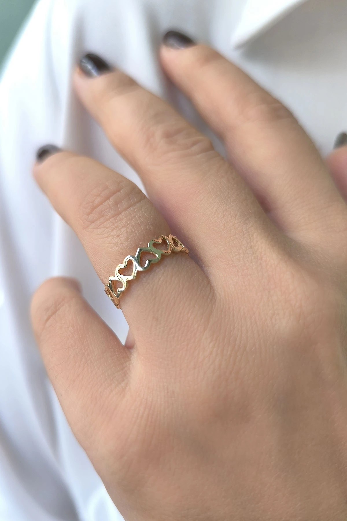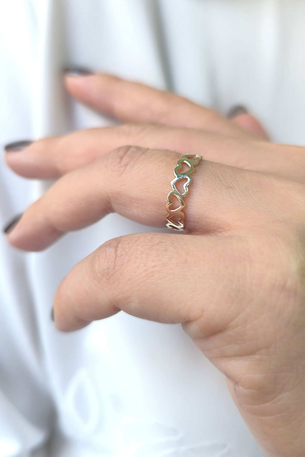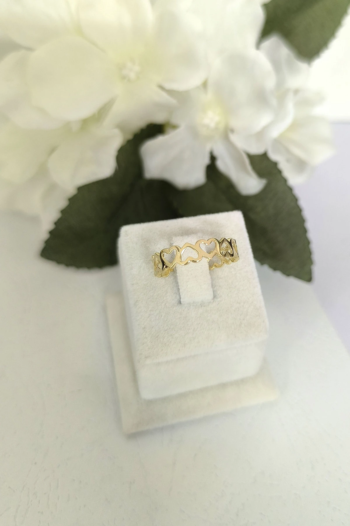 14 ayar sarı altın günlük kullanıma uygun 1.40 gram ağırlığında sıralı kalp taşsız altın yüzük.