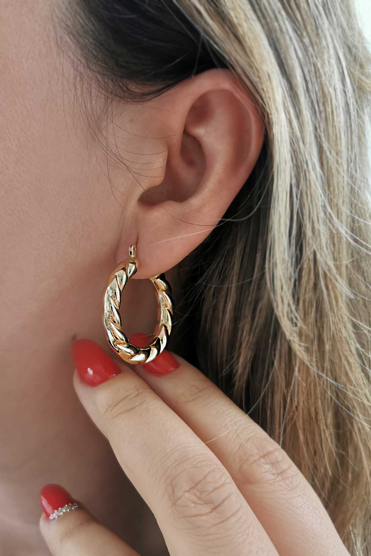 14 Ayar 3 Cm Boyunda 5.45 Gr Ağırlığında Sade, Spor Bir Duruşa Sahip, Günlük Kullanıma Uygun Sırma Burgu Altın Halka Küpe.
