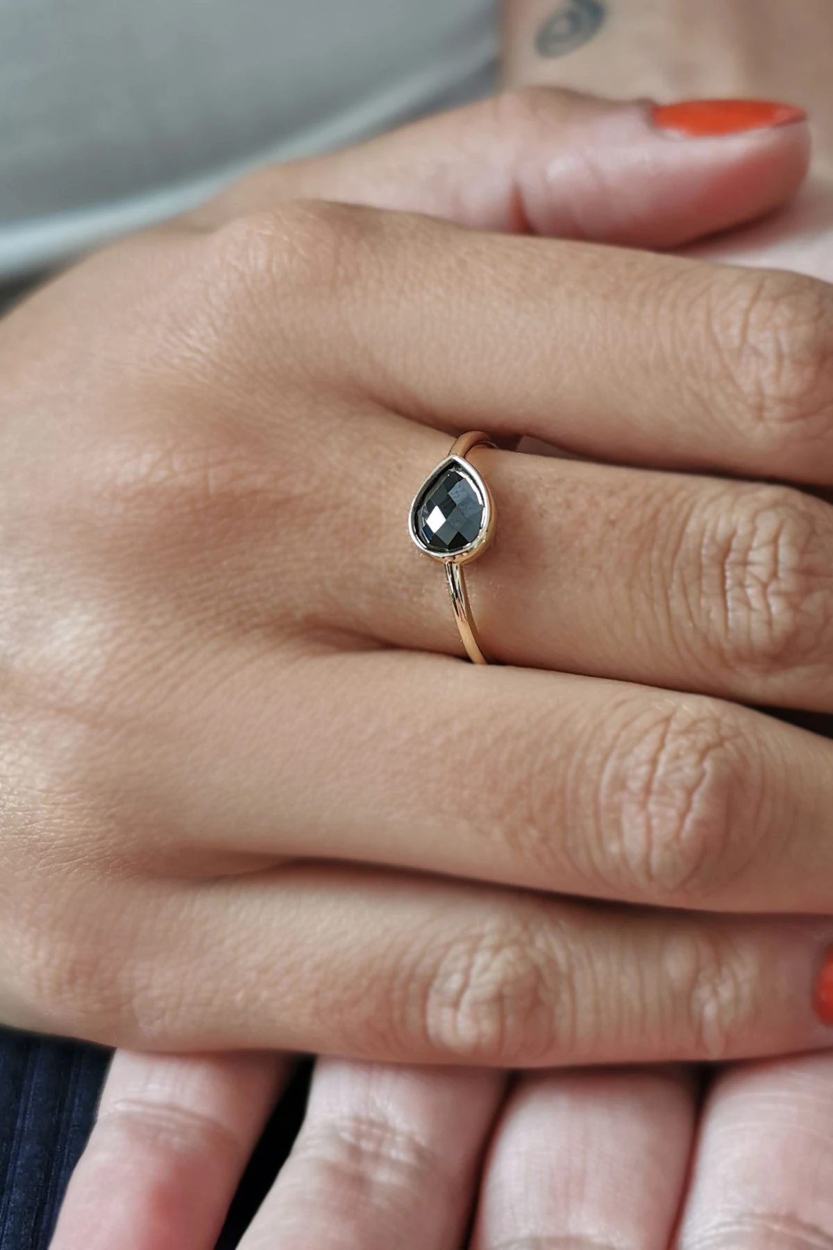 14 Ayar sade tasarımı ile zarif duruşa sahip damla kesim onix siyah taşlı sevdiklerinize yada kendinize armağan olarak tercih edebileceğiniz modern model günlük kullanıma uygun 1.80 gram ağırlığında altın yüzük.