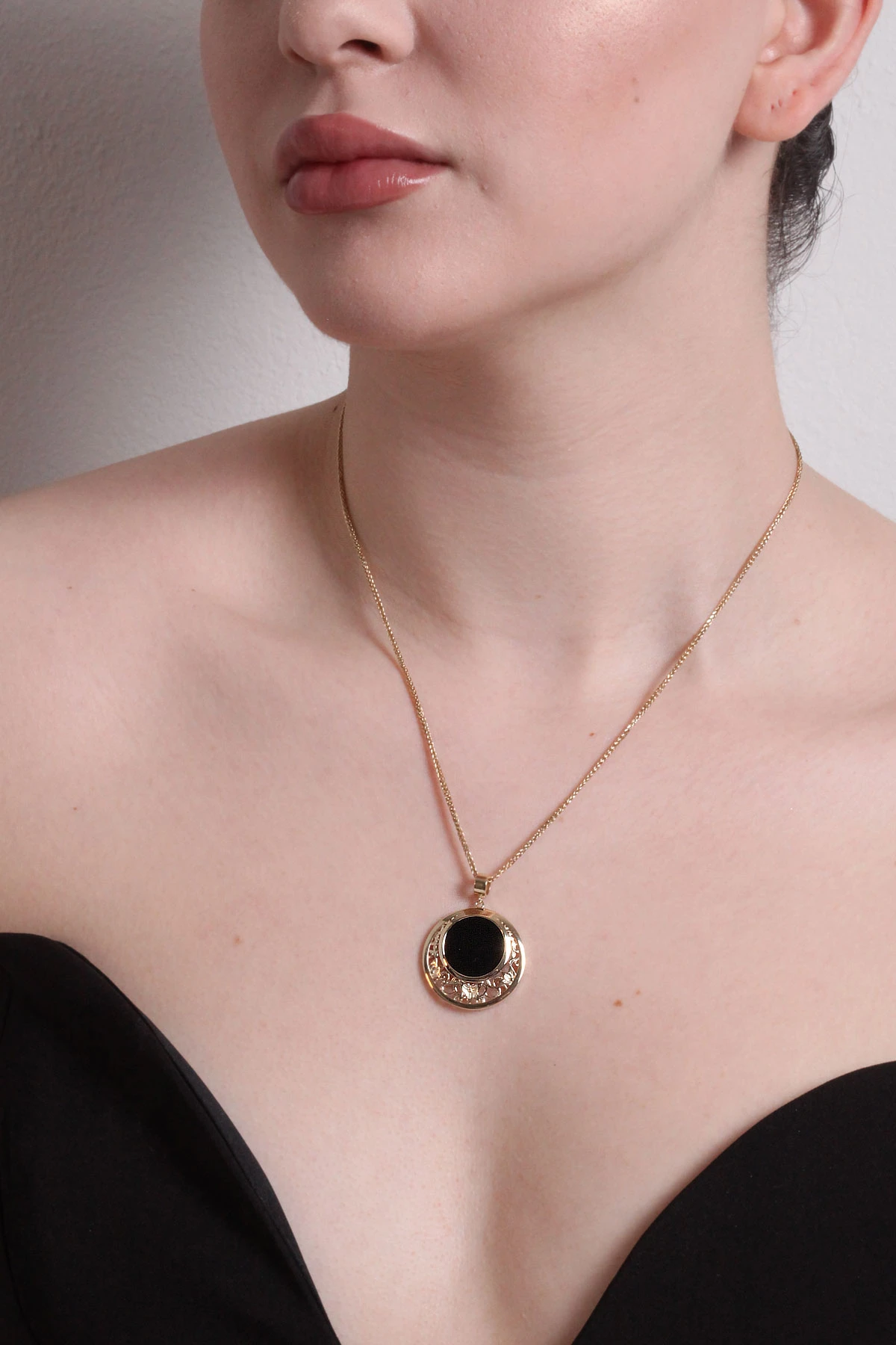Antik Ve Modern Tarzı Beraberinde Taşıyan Oldukça Şık Bir Modele Sahip 6.50 Gr. Ağırlığında 14 Ayar Altın Siyah Mineli Kolye.