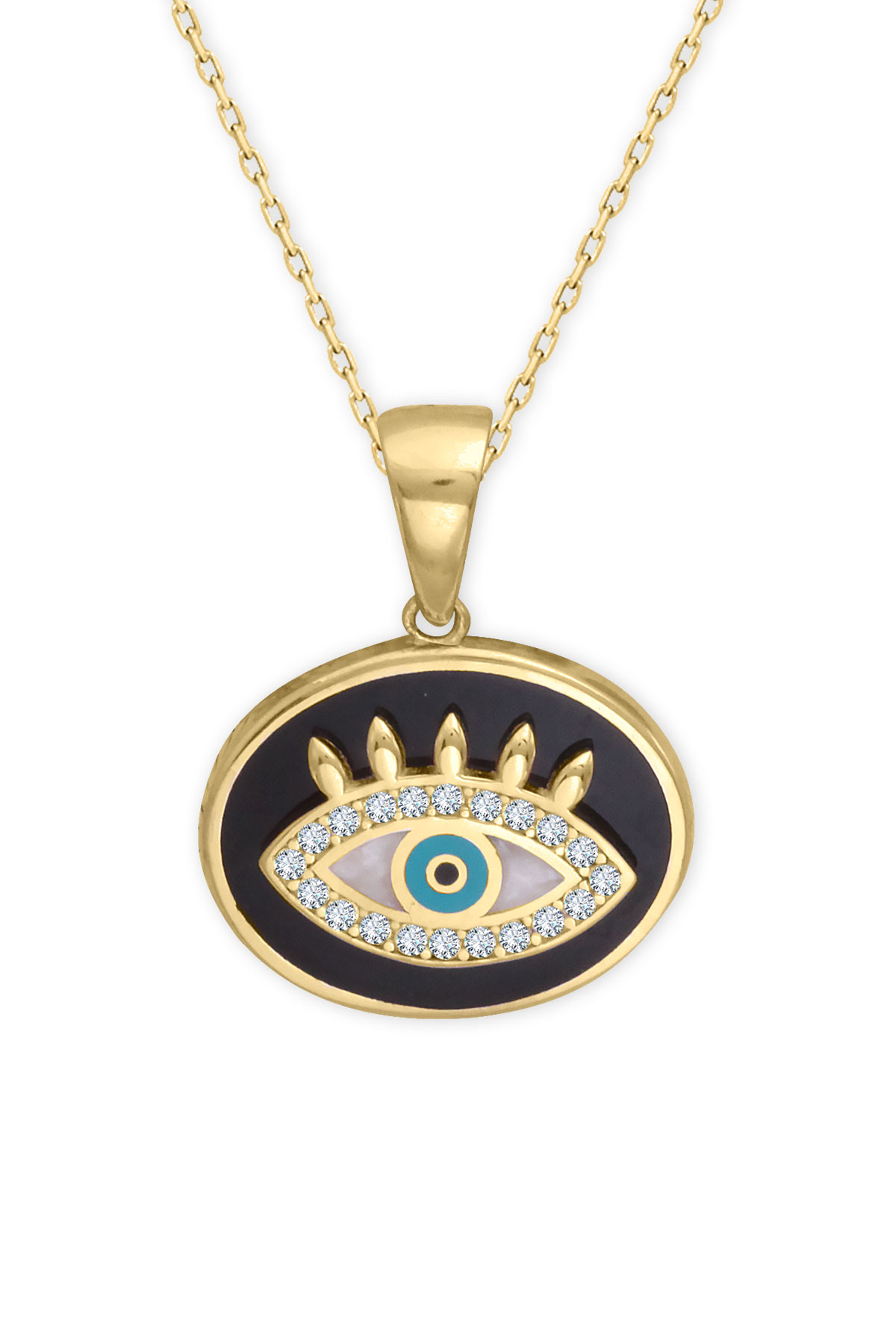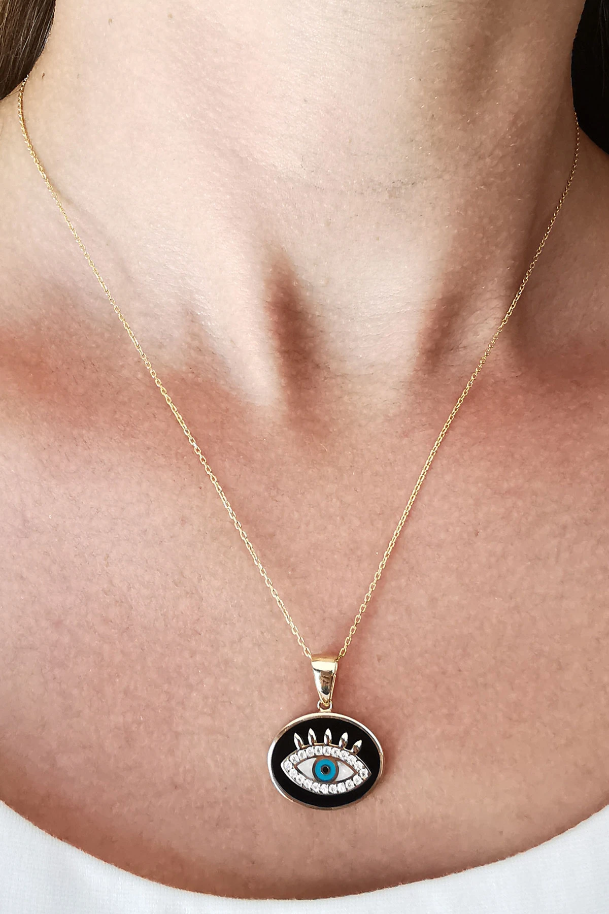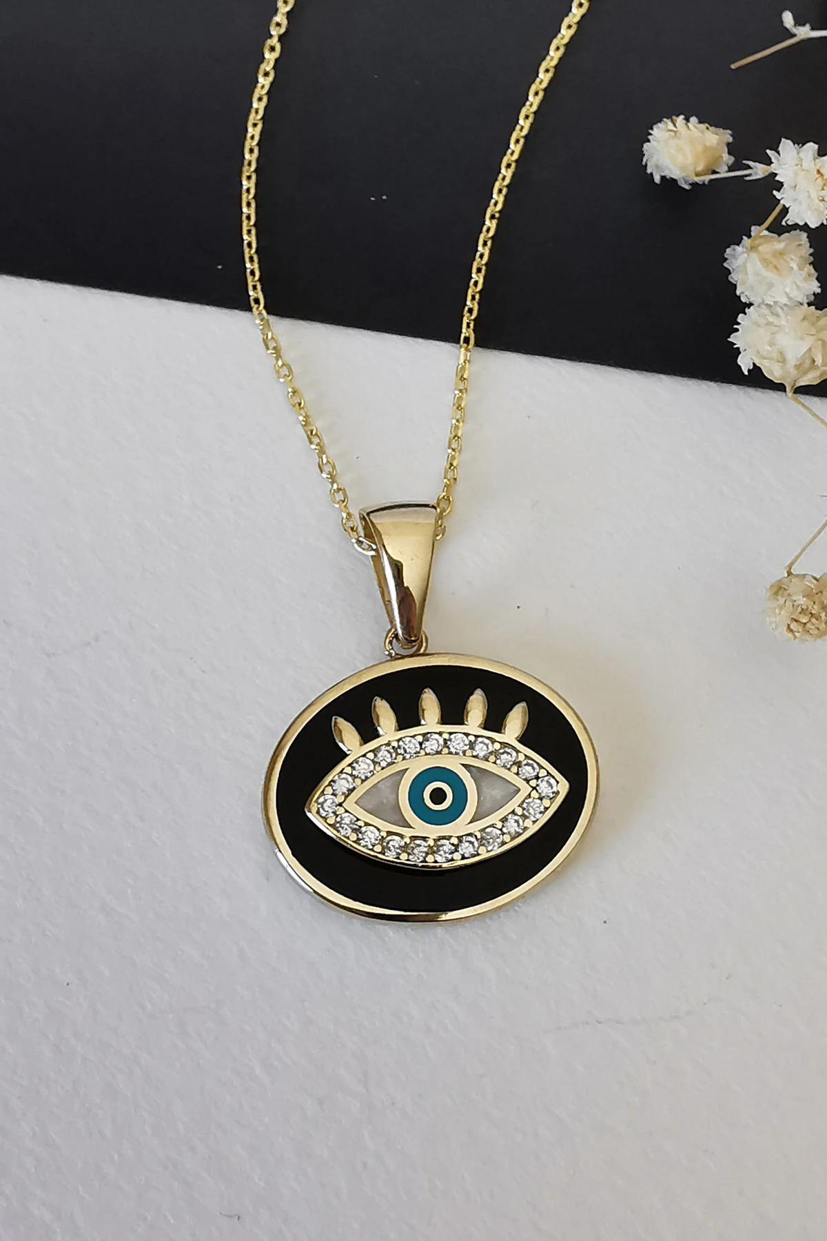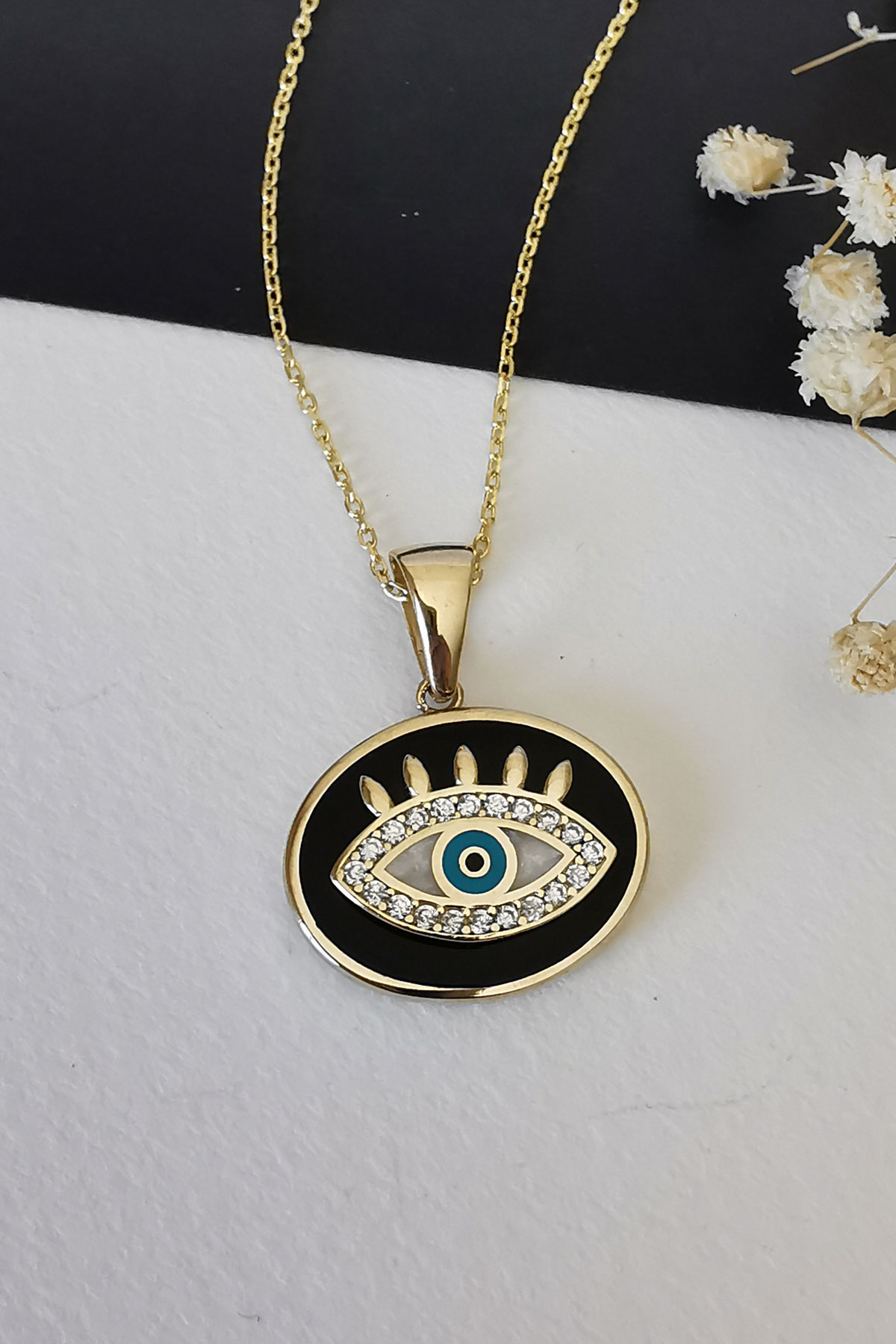 5.90 Gr. 3 Cm boyutunda siyah mineli oval model 14 ayar altın kolye.