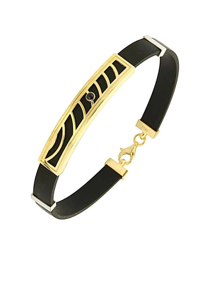 Prestij Ve Tarz Sahibi Beylerin Severek Kullanacağı 14 Ayar Siyah Taş Detaylı Dalga Model Günlük Kullanıma Uygun Spor Altın Erkek Bileklik.