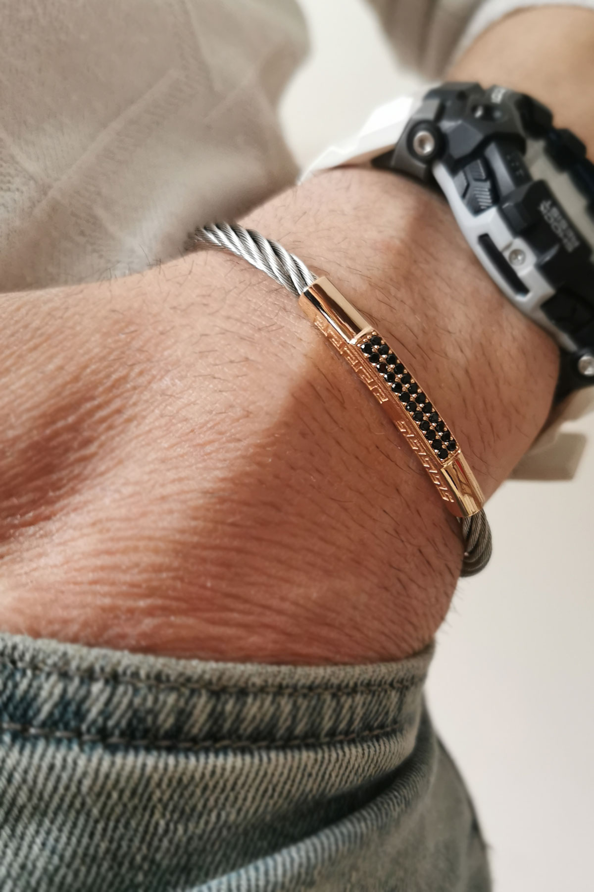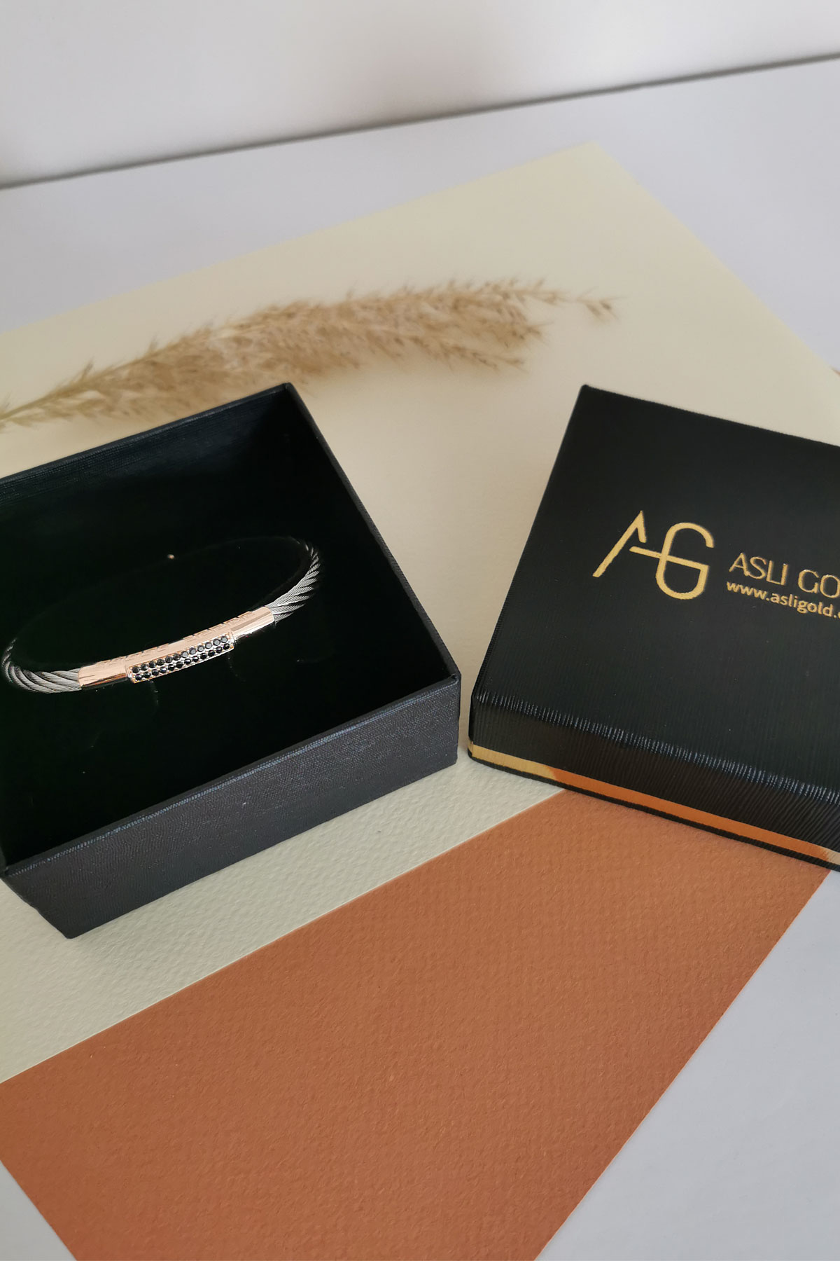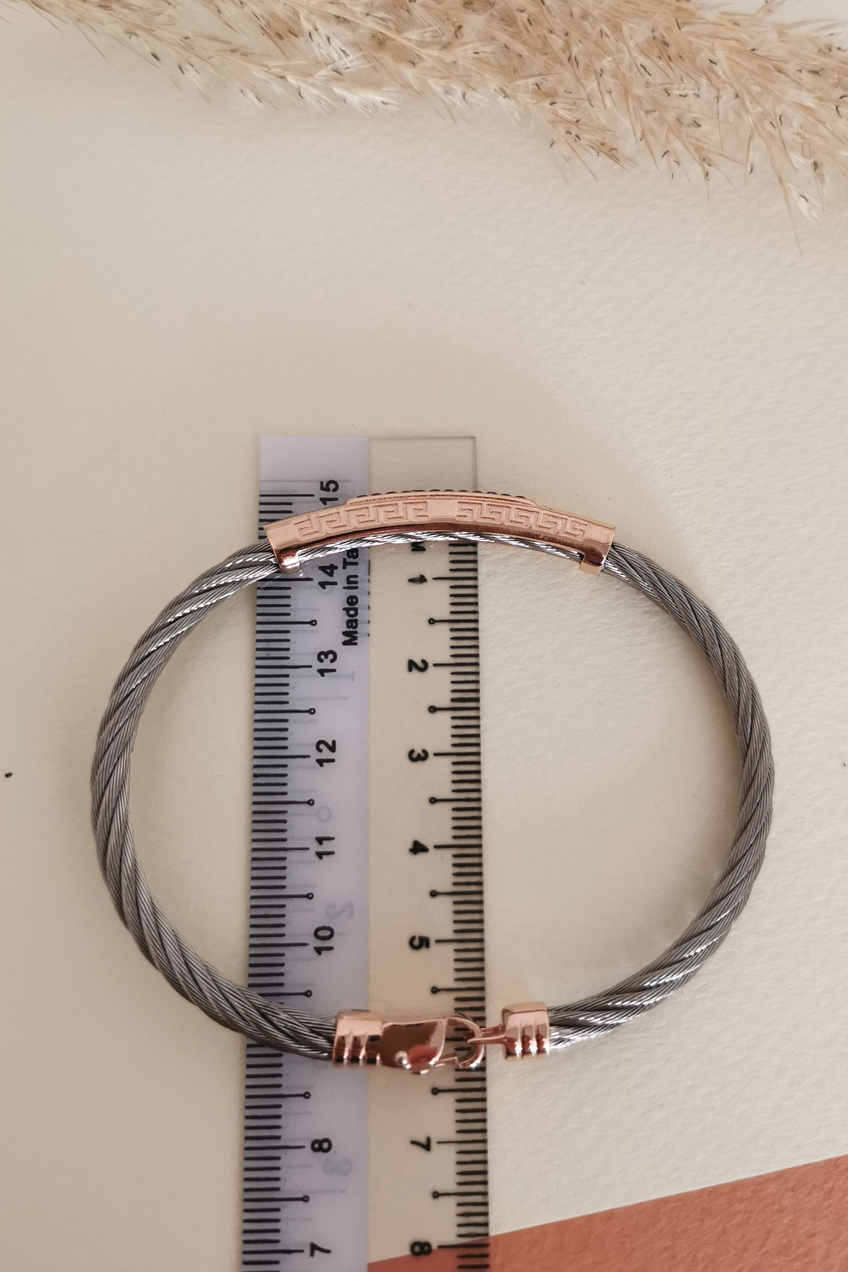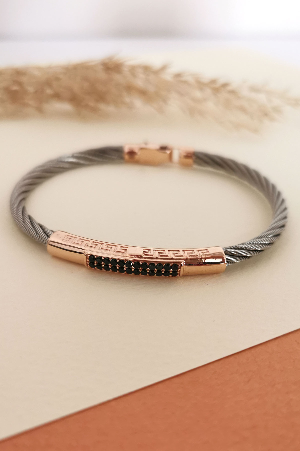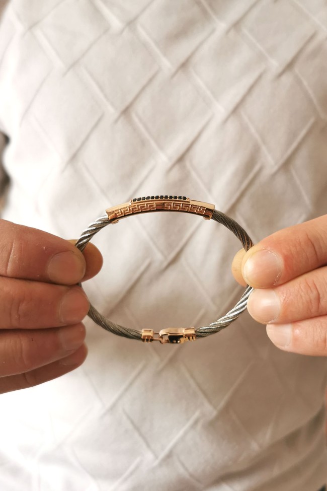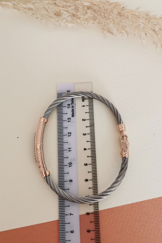 Modeldeki rose gold üst ve kilit parçalar 14 ayar altındır 8.20 gramdır, ortalama 8.50 gram çelik ağırlığı mevcuttur, kararma yapmaz uzun ömürlü kullanım için deniz ve havuz suyuna sokmamanızı öneririz.