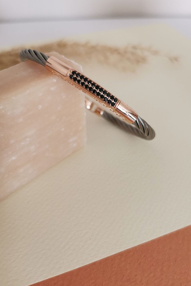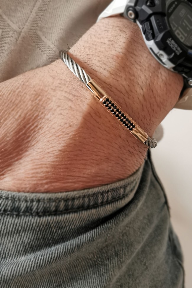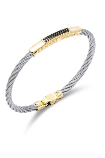 14 Ayar siyah taş detaylı spor ve şık tasarımı ile modern duruşa sahip günlük kullanıma uygun 8.20 gram ağırlığında gösterişli tarz model altın çelik erkek bilekliği.