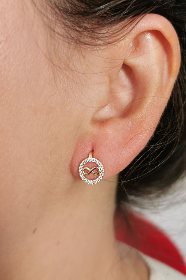 2.00 Gram Ağırlığında 1.2 Cm Boyunda Zirkon Taşlı Minimal Yuvarlak Model 14 Ayar Altın Spor Sonsuzluk Küpe.