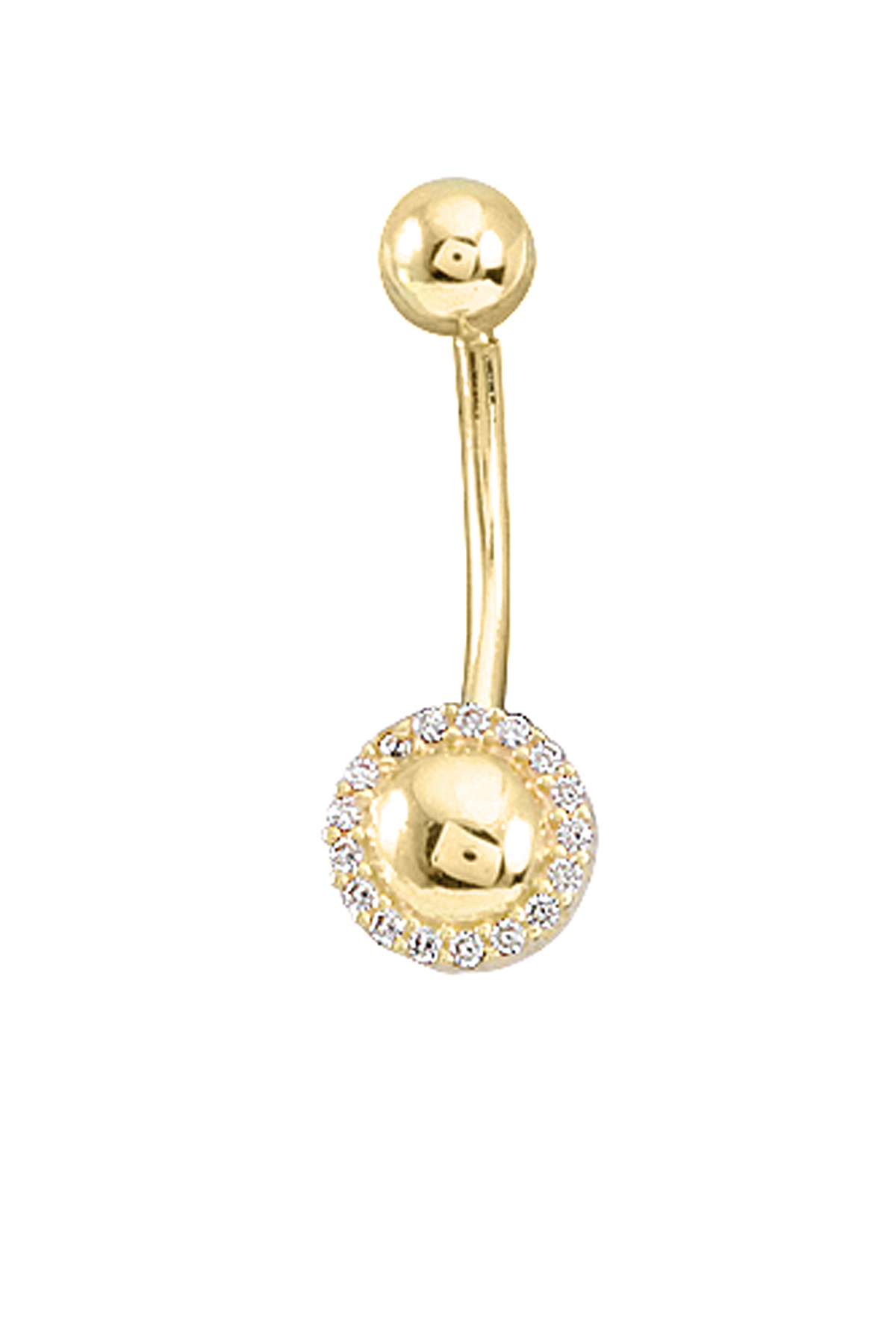 Zirkon Taş Detaylı Yuvarlak Spor Model Işıl Işıl  14 Ayar Altın Göbek Piercingi. İnsan vücuduna en uyumlu değerli maden olan altın göbek piercinglerini sağlıkla ve güvenle uzunca seneler kullanabilirsiniz.