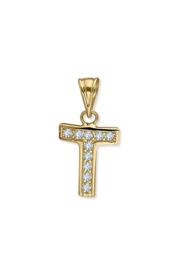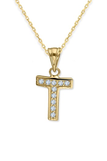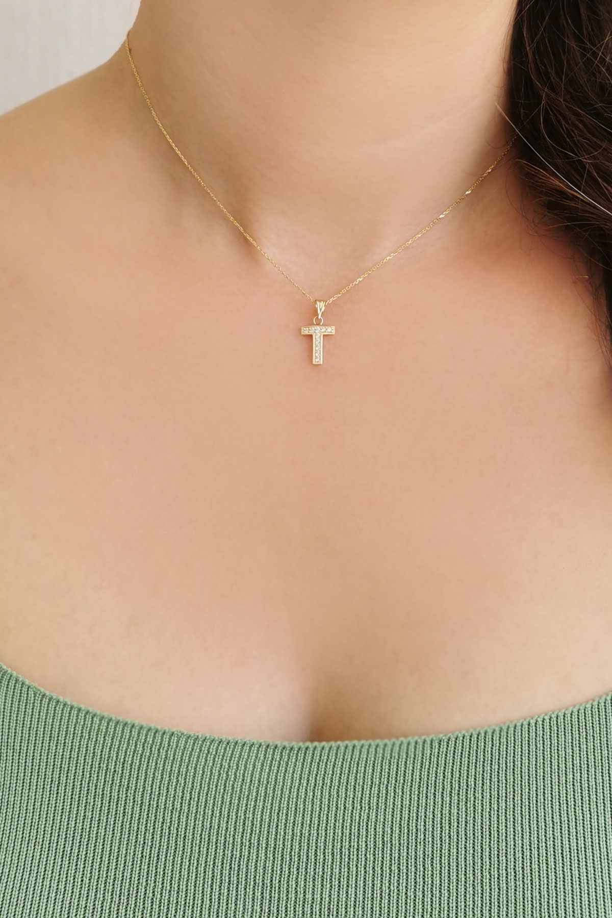 14 Ayar Altın T Harfi Zirkon Taşlı Sade Tasarım Kolye.