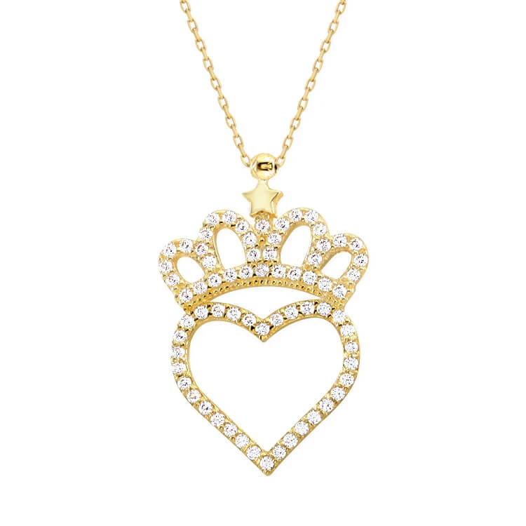 Kalbinize taç ettiğiniz sevdiğinize armağan edebileceğiniz anlam dolu bir hediye seçeneği, taç detaylı 14 ayar altın kalp kolye. *Ürünlerimiz faturalıdır güvenle satın alabilirsiniz, özel hediye kutusunda ücretsiz kargo ile gönderilecektir.
