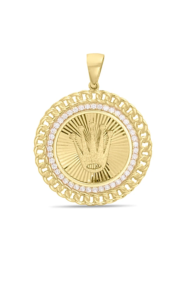 14 Ayar altın 6.80 gram ağırlığında şık ve gündelik kullanıma uygun 4 cm boyunda taç model madalyon erkek kolye ucu.
